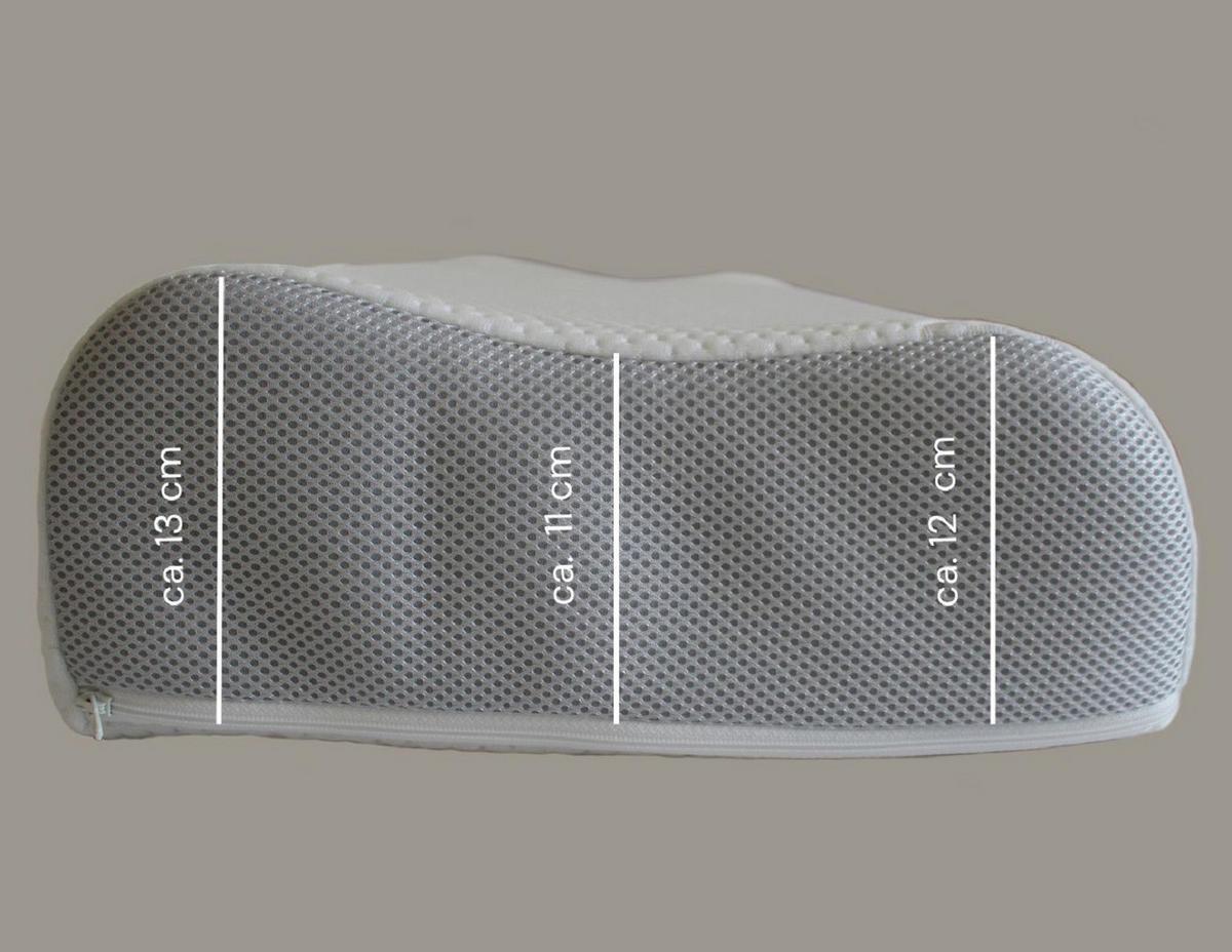 Благодаря двум встроенным дополнительным пластинам ее можно индивидуально отрегулировать в соответствии с вашими потребностями. Гелевая пена с волнообразным профилем и плотностью 50% отлично снимает давление с шейного отдела позвоночника, мышц и сухожилий. Несмотря на эффект памяти, гелевая пена обладает высокой воздухопроницаемостью, обеспечивая приятную вентиляцию.