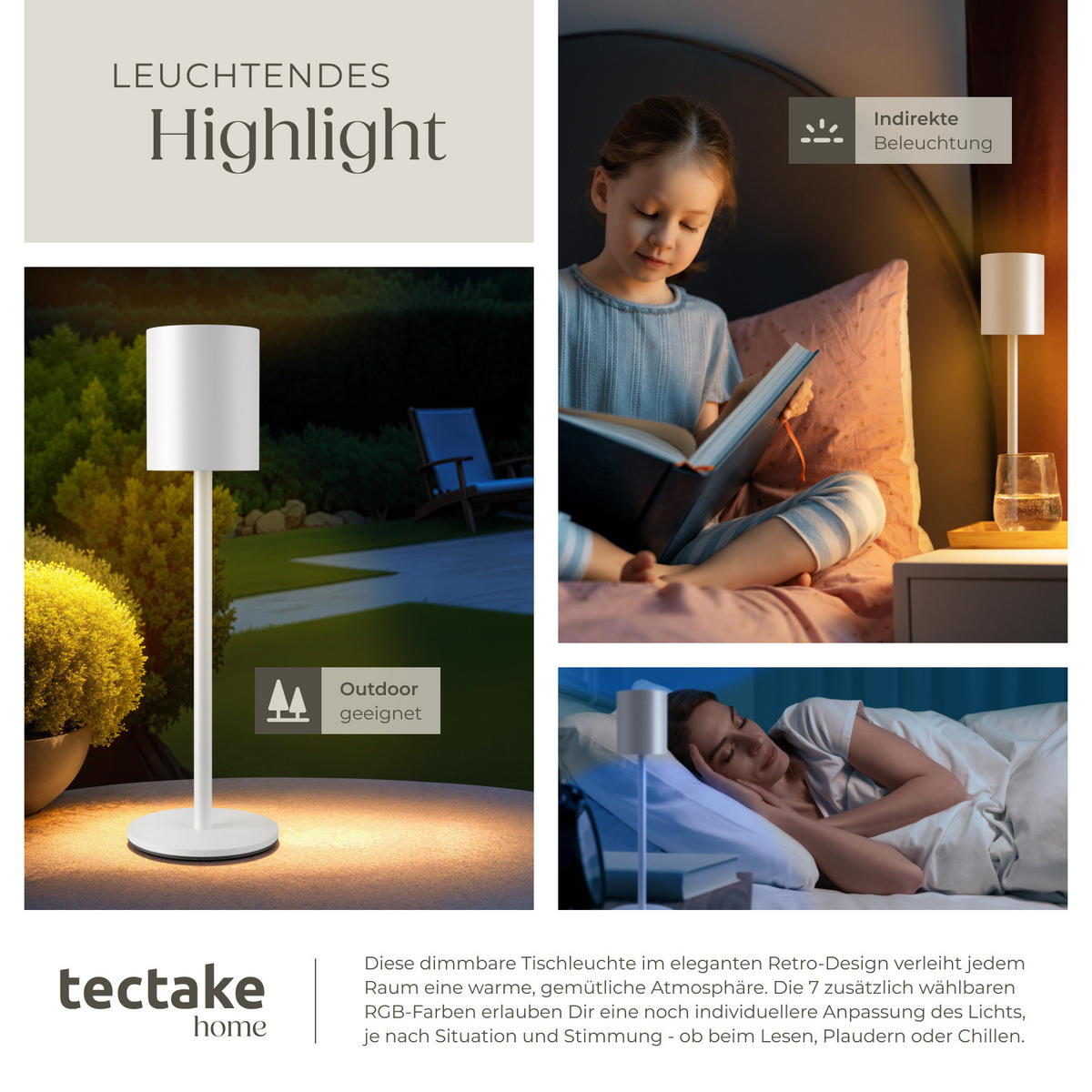 С небольшой настольной лампой в стиле ретро Corly от tectake вы можете создать очаровательную атмосферу в своем доме. Она впечатляет не только своим очаровательным дизайном, но и универсальностью использования. Будь то гостиная, спальня или терраса, эта жемчужина легко впишется в любую обстановку и создаст сияющую атмосферу.