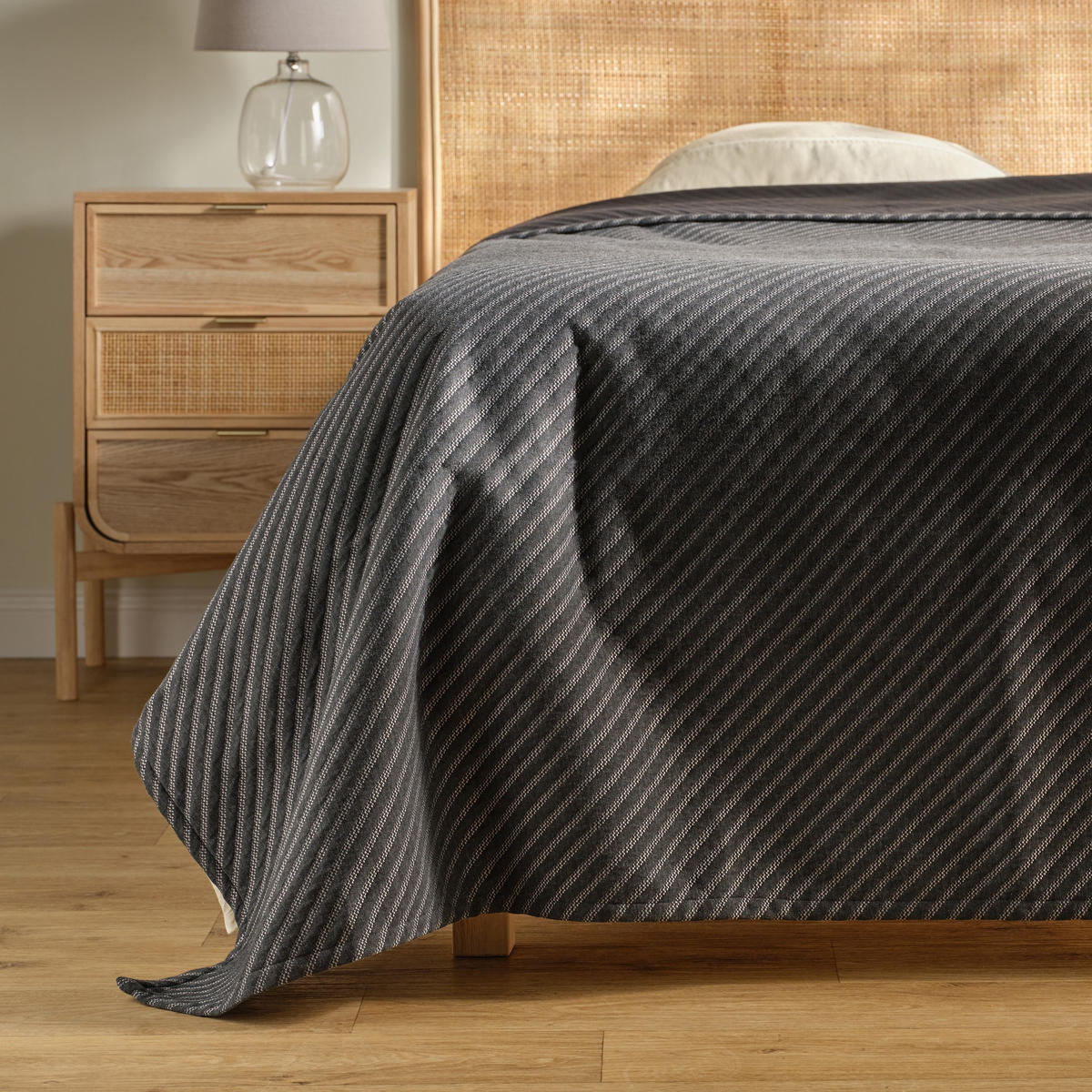 Это покрывало из трикотажа и полиэстера элегантного черного цвета - уникальный декоративный и функциональный предмет. Оно идеально подходит для кровати, даря комфорт и тепло. Мягкая, приятная на ощупь ткань прочна и проста в уходе, а ее сдержанный дизайн идеально дополнит интерьер в самых разных стилях.