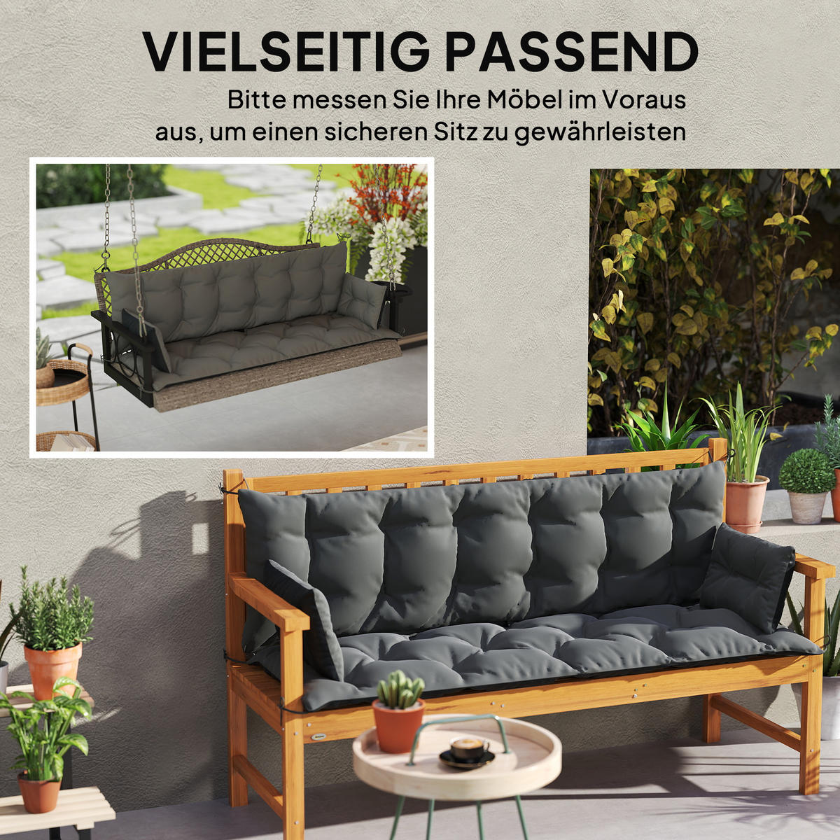 Оптимизируйте пространство на открытом воздухе с помощью подушки для садовой мебели Outsunny. Двусторонний дизайн и контрастные цвета подушки для сиденья позволяют варьировать цвет на вашем патио, в саду или на балконе. Эти подушки для садовой скамейки, изготовленные из полиэстера плотностью 230 г/м², сохраняют форму благодаря технике тафтинг. Они устойчивы к брызгам и легко чистятся, идеально подходят для трехместных мест, таких как диваны и качели на веранде, и обеспечивают длительный стильный комфорт.
