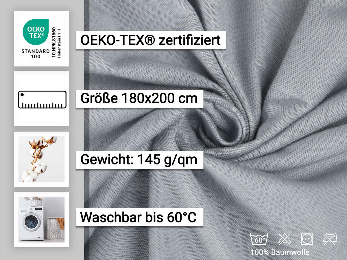 Простыня Zollner светло-серый, 180/200 см