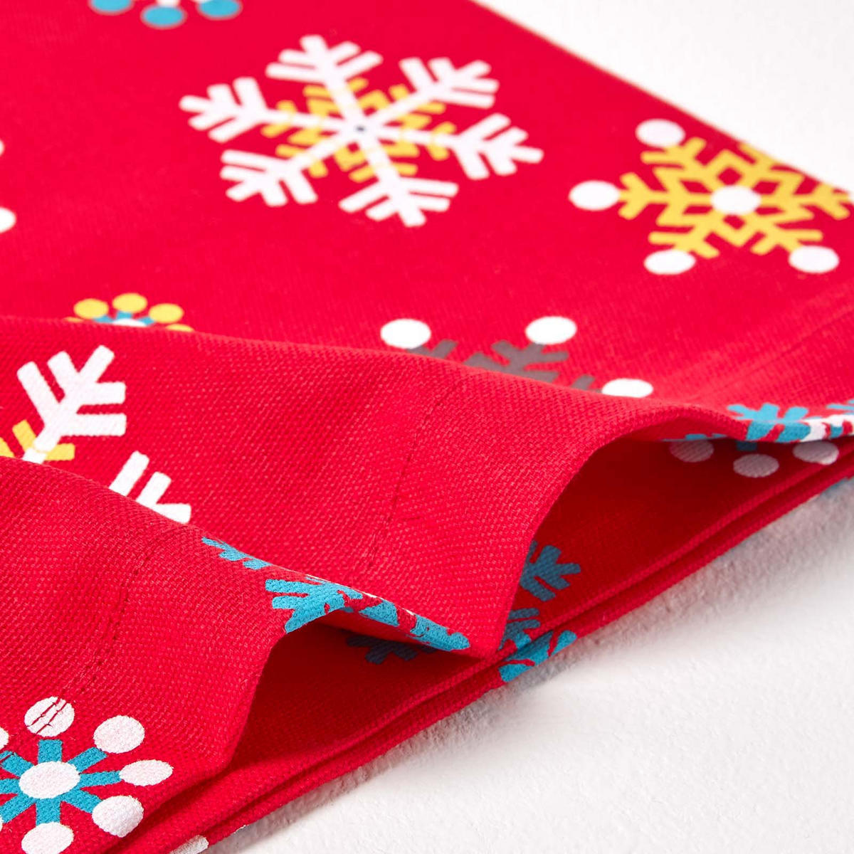 Особенности: В 2 размерах - Изготовлено вручную из высококачественного хлопка - Прочный, легко стирается и не требует особого ухода - Веселый зимний дизайн с разноцветными снежинками - Идеально подходит для рождественского сезона - в наличии подходящие салфетки и многое другое.