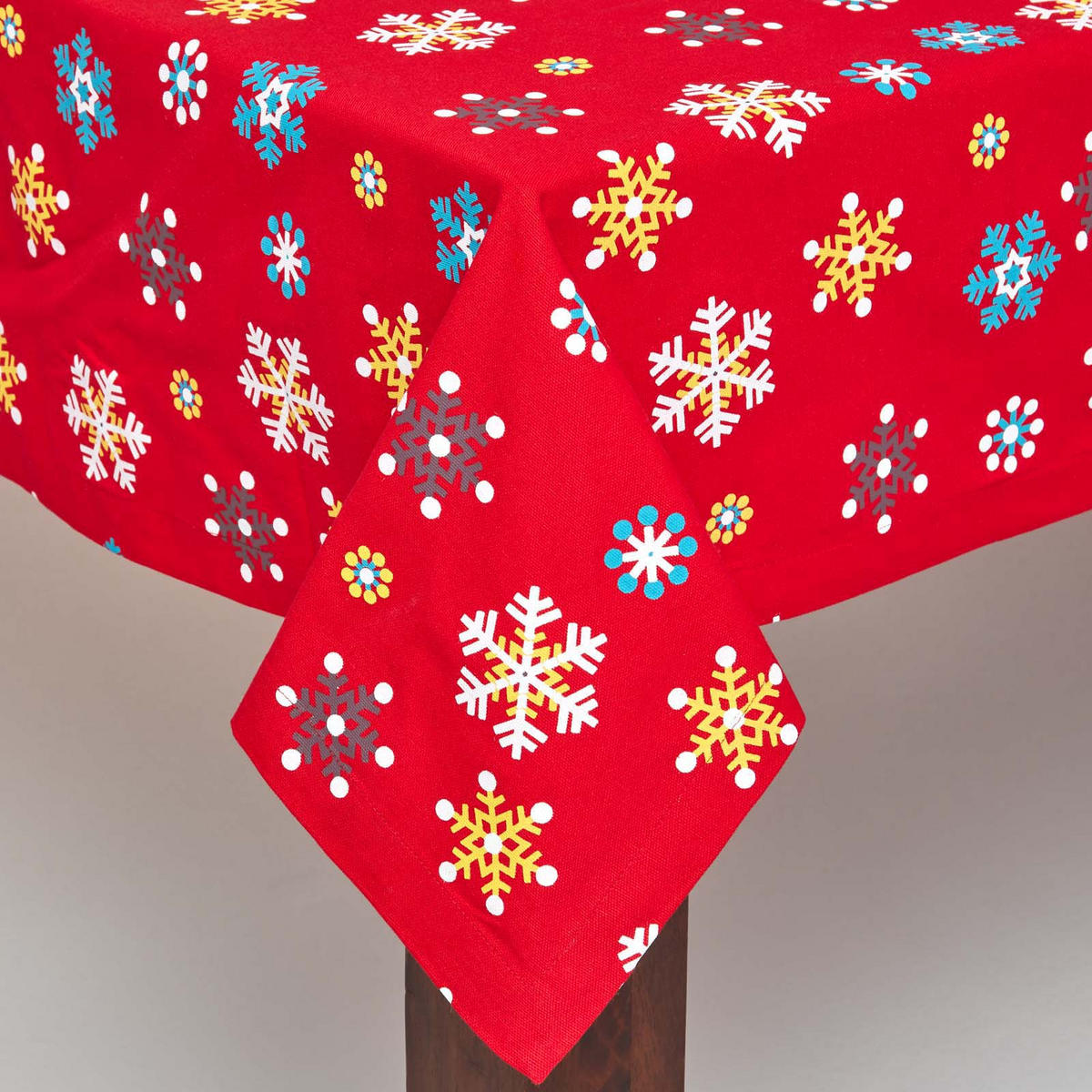 Особенности: В 2 размерах - Изготовлено вручную из высококачественного хлопка - Прочный, легко стирается и не требует особого ухода - Веселый зимний дизайн с разноцветными снежинками - Идеально подходит для рождественского сезона - в наличии подходящие салфетки и многое другое.