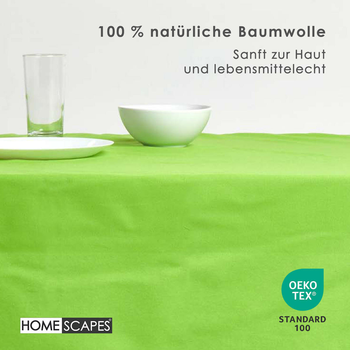 Лаймово-зеленая скатерть с мережкой - вневременная красота и ручная работаЭта элегантная скатерть свежего лаймового цвета добавит живости вашему обеденному столу. Отделка ручной работы с мережкой подчеркивает ее высокое качество и делает ее стильным спутником как для повседневного использования, так и для праздничных случаев. Изготовленная из 100% хлопка и сертифицированная OEKO-TEX, скатерть впечатляет своим натуральным качеством и приятными на ощупь.