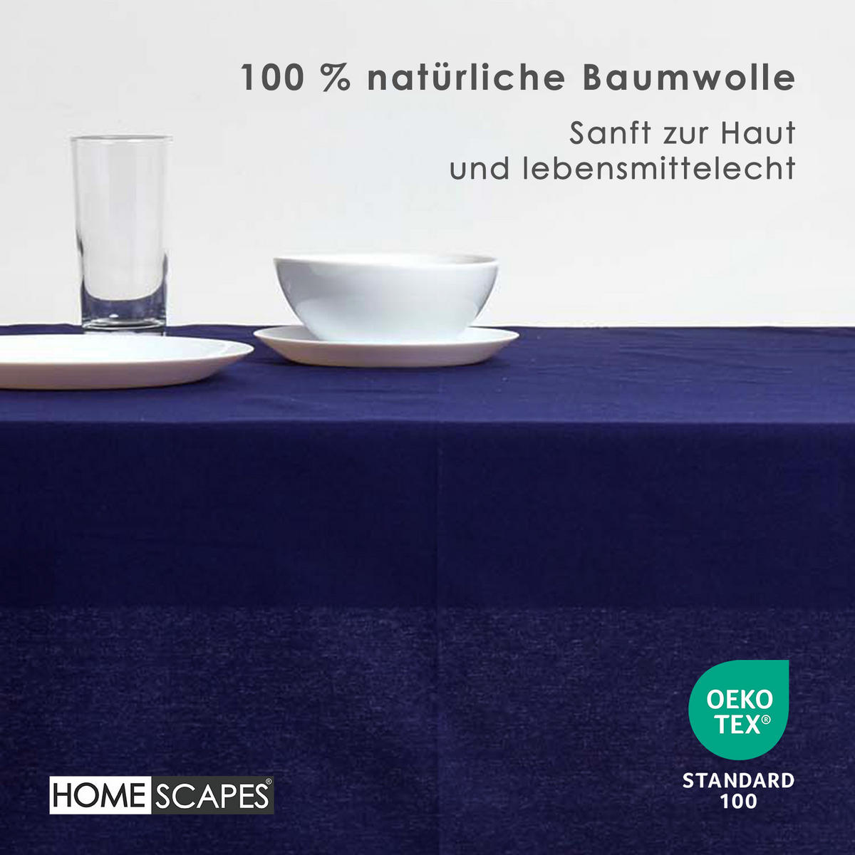Темно-синяя скатерть с мережкой - вневременная красота и ручная работаЭта элегантная скатерть глубокого темно-синего цвета придаст вашему обеденному столу элегантный и классический штрих. Отделка ручной работы с мережкой подчеркивает ее высокое качество и делает ее стильным спутником как для повседневного использования, так и для праздничных случаев. Изготовленная из 100% хлопка и сертифицированная OEKO-TEX, скатерть впечатляет своим натуральным качеством и приятным ощущением.
