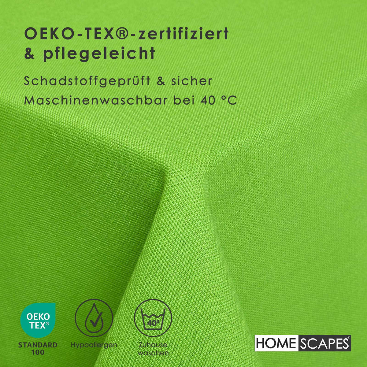 Лаймово-зеленая скатерть с мережкой - вневременная красота и ручная работаЭта элегантная скатерть свежего лаймового цвета придаст вашему обеденному столу живое прикосновение. Отделка ручной работы с мережкой подчеркивает ее высокое качество и делает ее стильным спутником как для повседневного использования, так и для праздничных случаев. Изготовленная из 100% хлопка и сертифицированная OEKO-TEX, скатерть впечатляет своим натуральным качеством и приятными на ощупь.