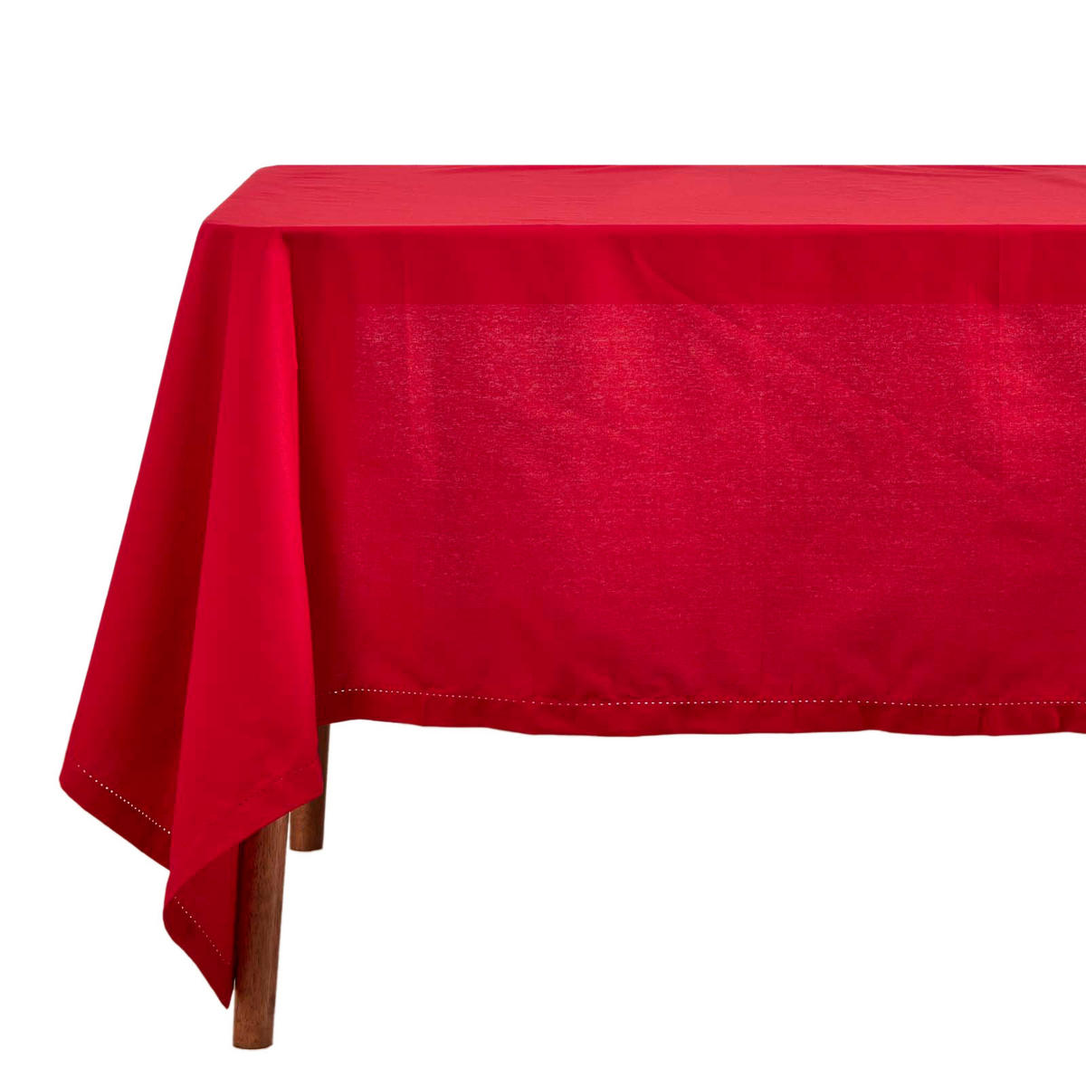 Красная скатерть с мережкой - вневременная красота и ручная работаЭта элегантная скатерть насыщенного красного цвета добавит живости вашему обеденному столу. Отделка ручной работы с мережкой подчеркивает ее высокое качество и делает ее стильным спутником как для повседневного использования, так и для праздничных случаев. Изготовленная из 100% хлопка и сертифицированная OEKO-TEX, скатерть впечатляет своим натуральным качеством и приятными на ощупь.