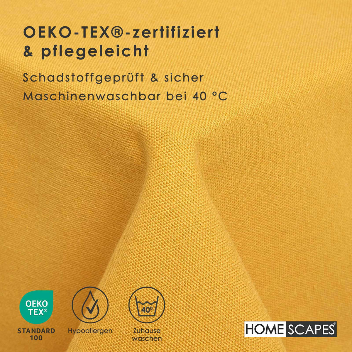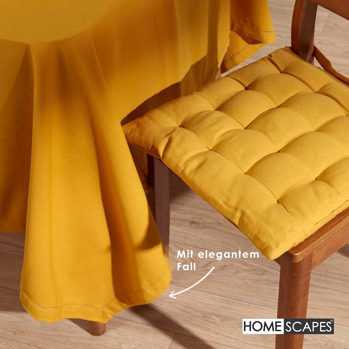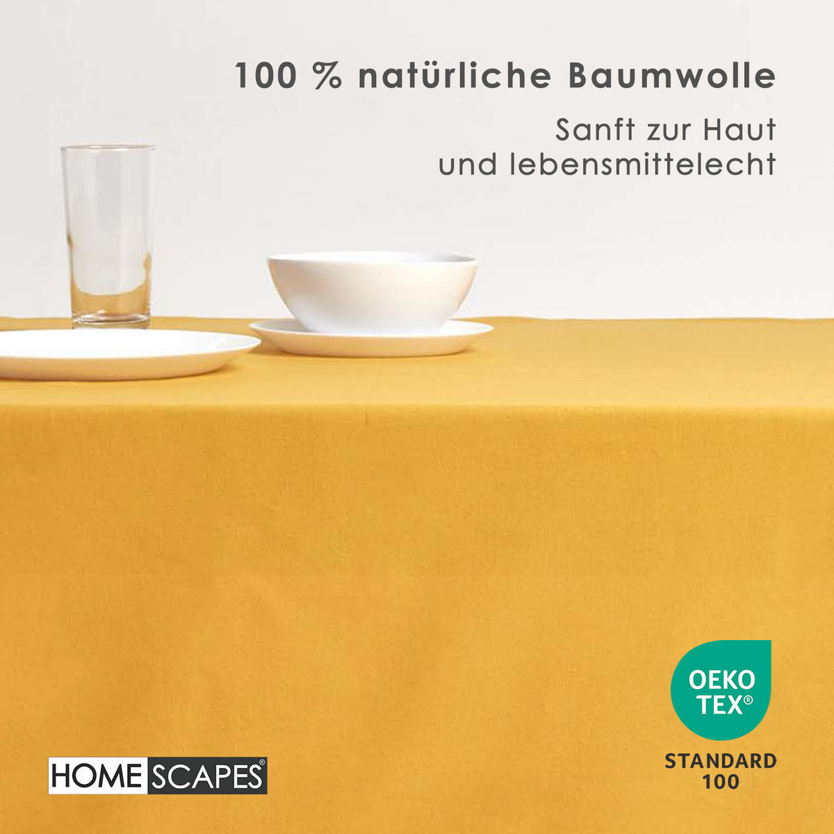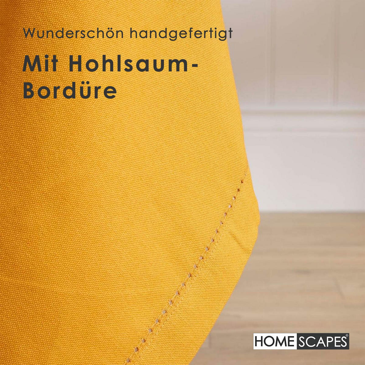 Горчично-желтая скатерть с мережкой - вневременная красота и ручная работаЭта элегантная скатерть яркого горчично-желтого цвета придаст вашему обеденному столу заманчиво теплое прикосновение. Отделка ручной работы с мережкой подчеркивает ее высокое качество и делает ее стильным спутником как для повседневного использования, так и для праздничных случаев. Изготовленная из 100% хлопка и сертифицированная OEKO-TEX, скатерть впечатляет своим натуральным качеством и приятными на ощупь.