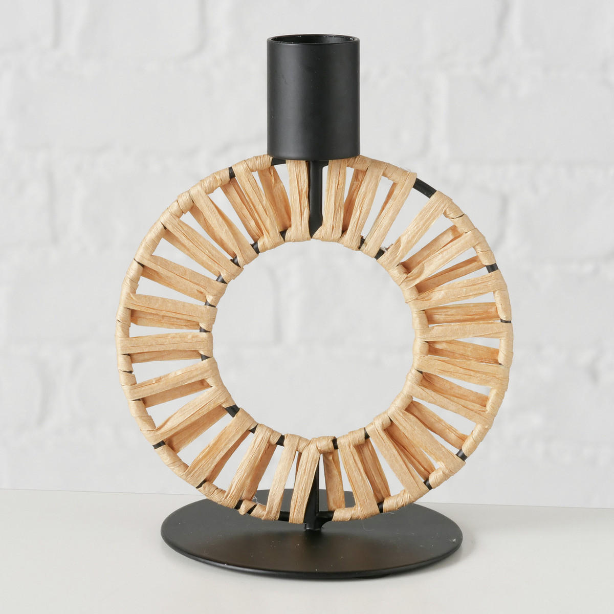 Металлический подсвечник TOKE с плетеной соломой 16 см - Стильный дизайн, сочетающий в себе современность и естественный акцент.