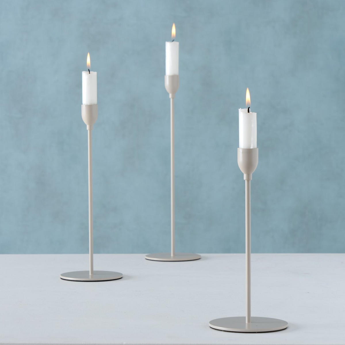 • Высококачественные материалы: Подсвечники из металла отличаются прочностью и устойчивостью к повреждениям. Матовая бежевая поверхность придает им современный вид.