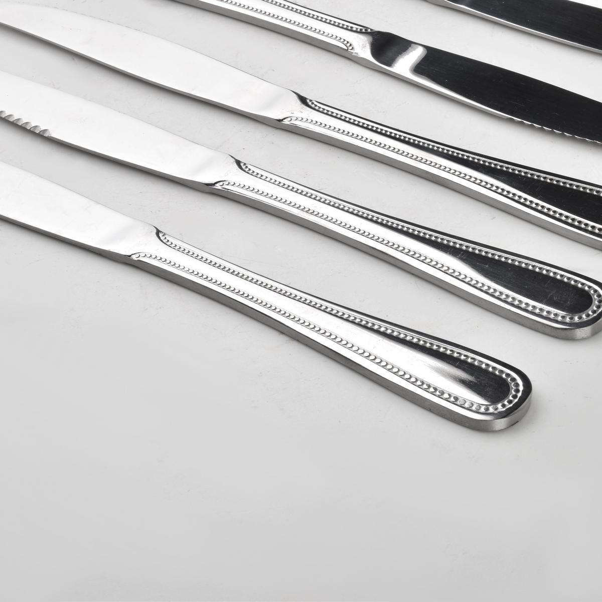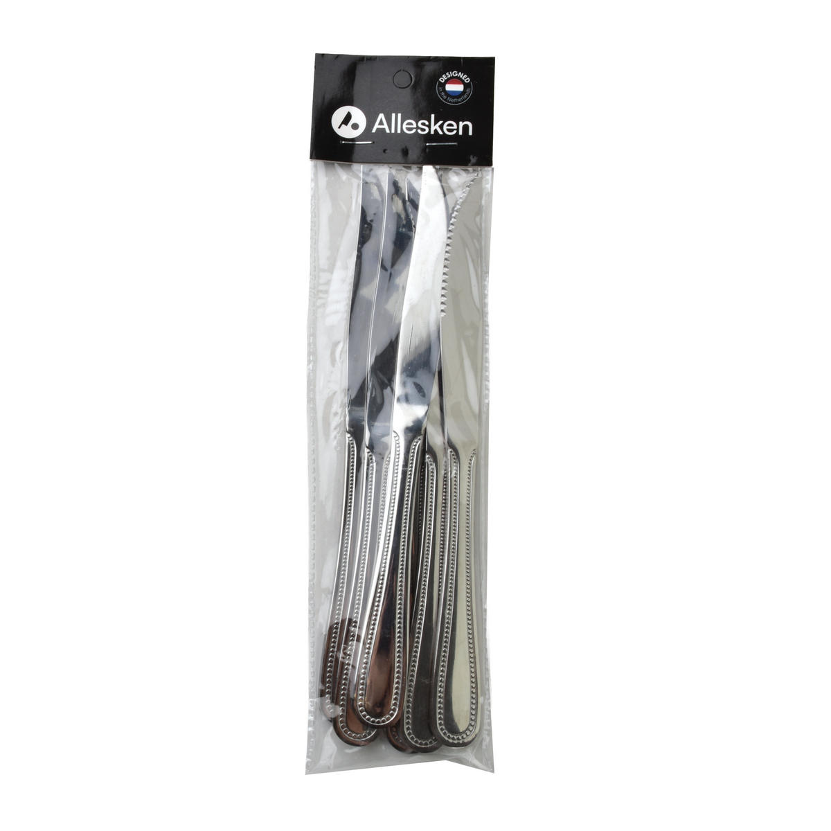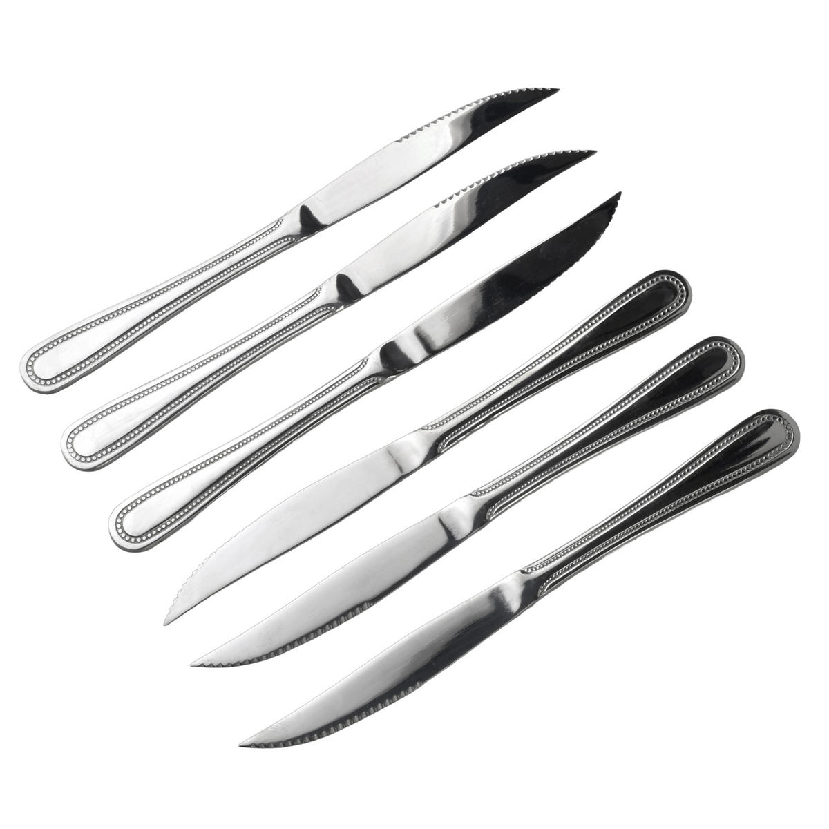 Набор из 6 ножей для стейков CHAMOMIL длиной 22,2 см станет идеальным дополнением к любой кухне. Эти ножи изготовлены из высококачественной нержавеющей стали, известной своей прочностью и устойчивостью к коррозии. Благодаря универсальному размеру ножи идеально подходят для повседневного использования, будь то нарезка овощей, фруктов, мяса или хлеба.