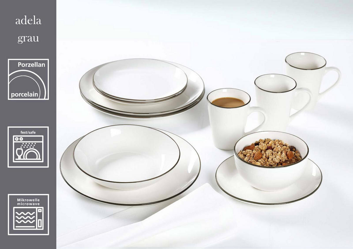 Щепотка цвета, пожалуйста! С Adela ничто не будет слишком ярким, поскольку предметы посуды имеют лишь узкую цветную полоску по краям. Это тонко подчеркивает внешние контуры простой формы купе и создает ощущение, будто еда и напитки заключены в рамку. Совет: если вам нравятся более яркие вещи, просто создайте непринужденный микс из доступных цветов Adela.