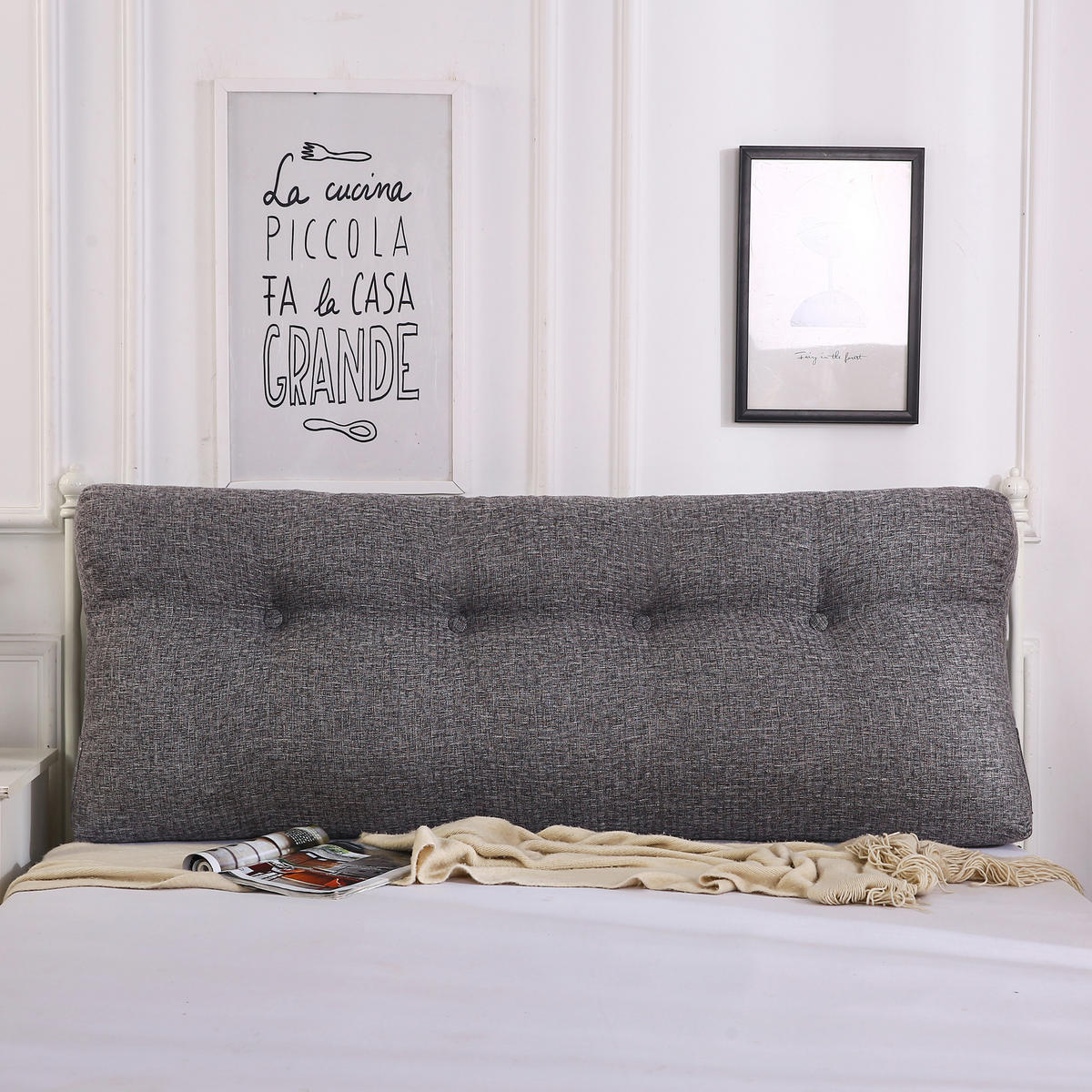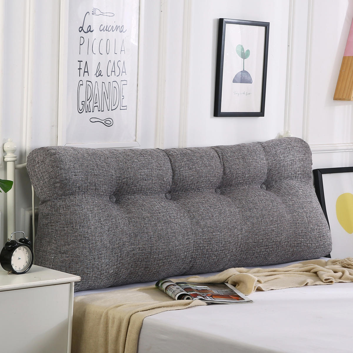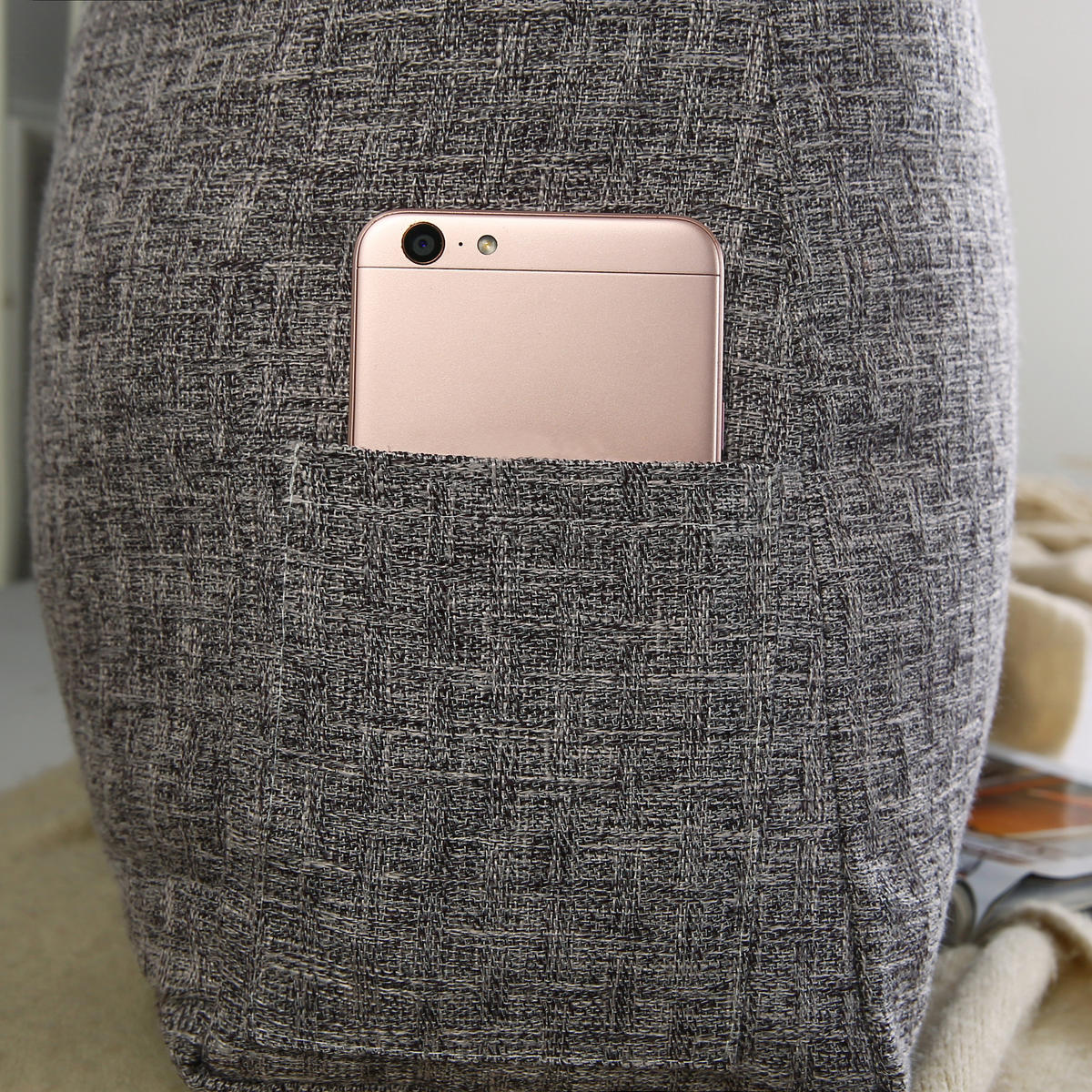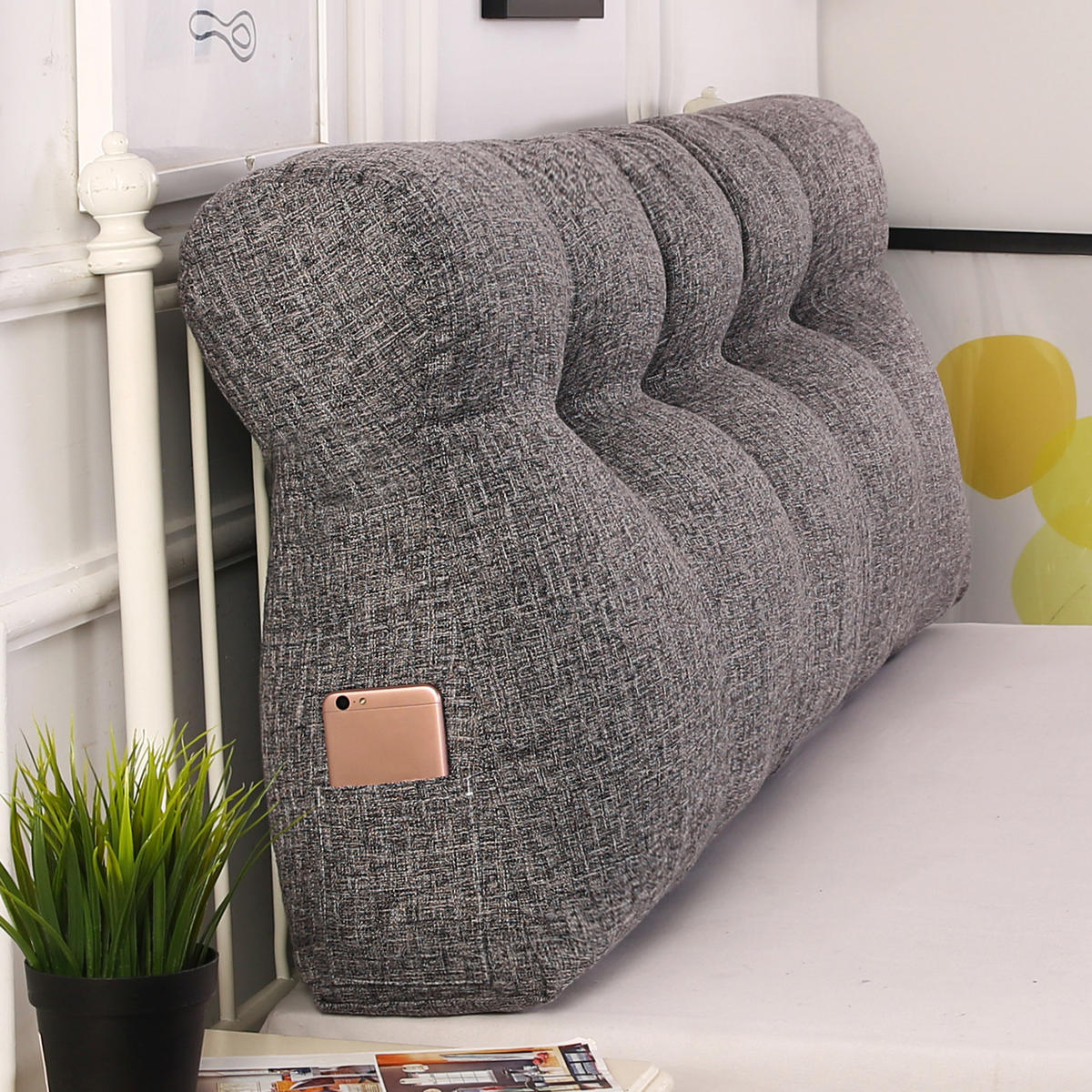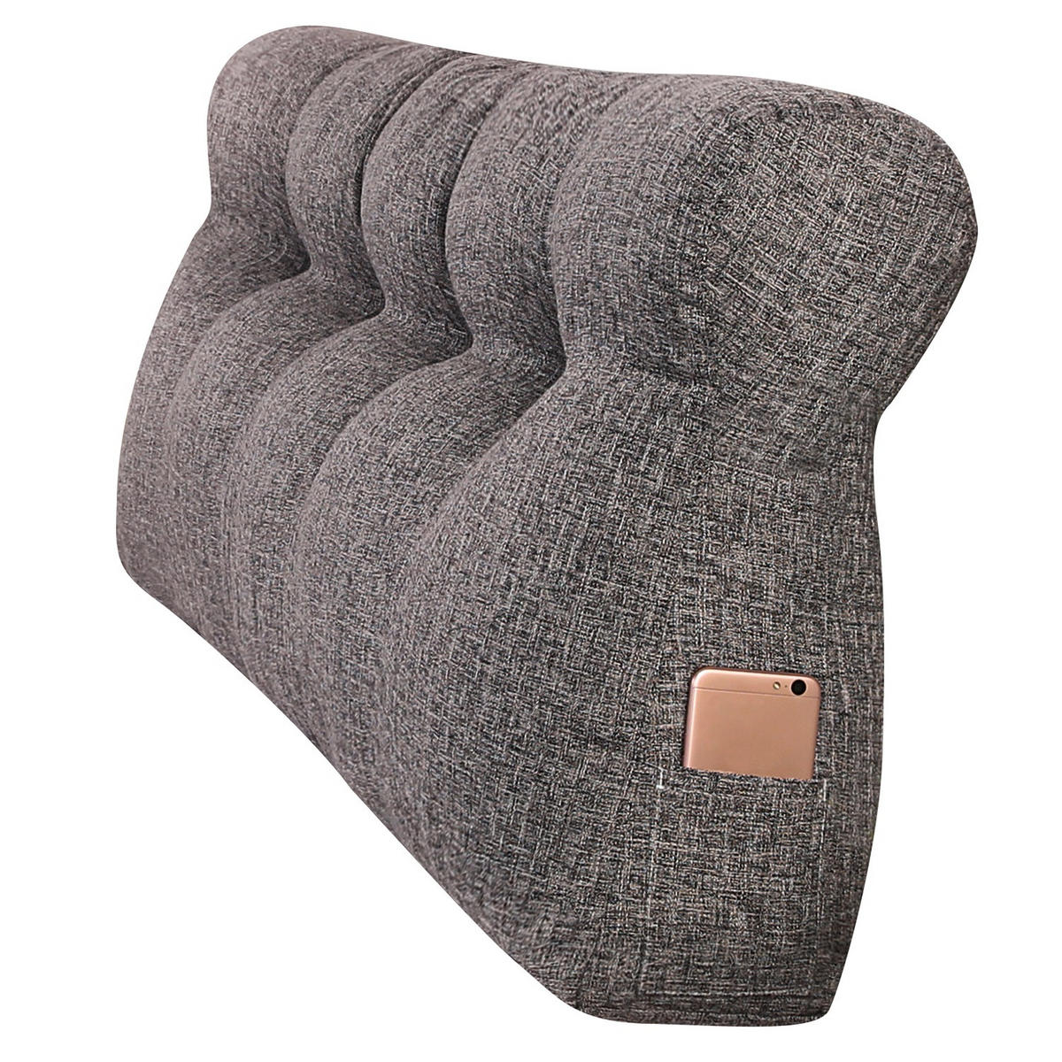 Эта подушка впишется в любую комнату. Ее темно-серый внешний вид имеет гладкий и минималистичный вид. Уникальный дизайн кнопок в винтажном стиле делает ее чрезвычайно практичной и подходящей для любого сезона, даже для спальни. Доступна в двух размерах. Боковые карманы вмещают мобильные телефоны, пульты дистанционного управления, ручки и другие предметы. Вы также можете с комфортом смотреть телевизор, читать и общаться в спальне. Независимо от того, как вы откидываетесь, эта подушка для чтения не будет скользить, как традиционные подушки. Это идеальный подарок для себя или друга.