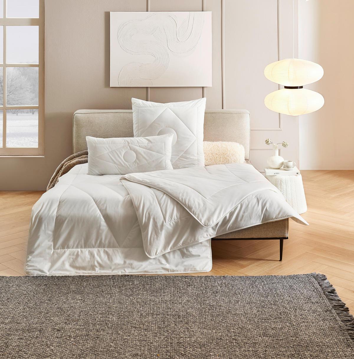 Ромбовидная стежок гарантирует, что наполнитель из полиэстерового полого волокна всегда сохраняет форму. Синтетические теплоизолирующие волокна обеспечивают нормальный уровень тепла, делая этот текстиль для сна универсальным. Благодаря машинной стирке при температуре до 60°C одеяло легко в уходе, гигиенически освежаясь в кратчайшие сроки. Эта всесезонная кровать SLEEPTEX (прибл. 135 x 200 см) впечатляет в любое время года!