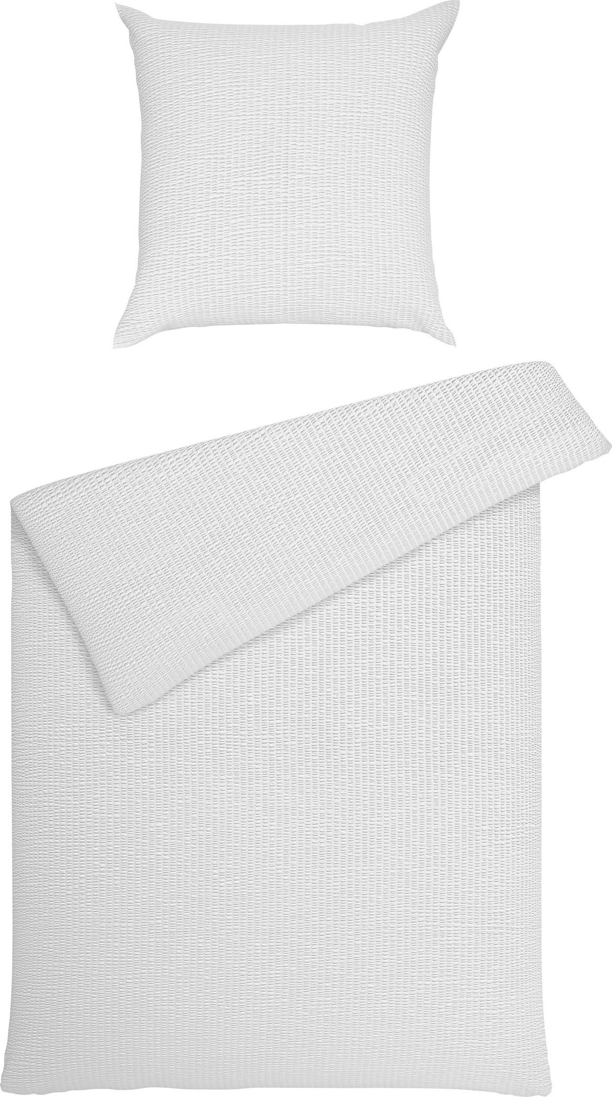 Наслаждайтесь всеми преимуществами сирсакера! Постельное белье из этой ткани идеально подходит для теплых месяцев. Этот белый комплект обеспечит вашей коже комфорт благодаря дышащим натуральным волокнам из 100% хлопка. Молния позволяет быстро надевать и снимать постельное белье. Вам обязательно понравятся пододеяльник (примерно 155 x 220 см) и наволочка (примерно 80 x 80 см)!