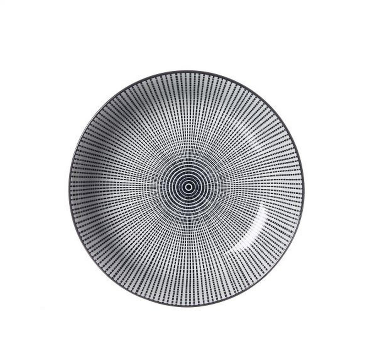 Эта суповая тарелка Takeo Stripes отRITZENHOFF & BREKERпривнесет элегантность в ваш стол. Дизайн в азиатском стиле отличается непрерывными прямыми линиями, которые в сочетании создают стильный узор. Черно-белая тарелка может быть представлена в лаконичном стиле или дополнена цветными акцентами.