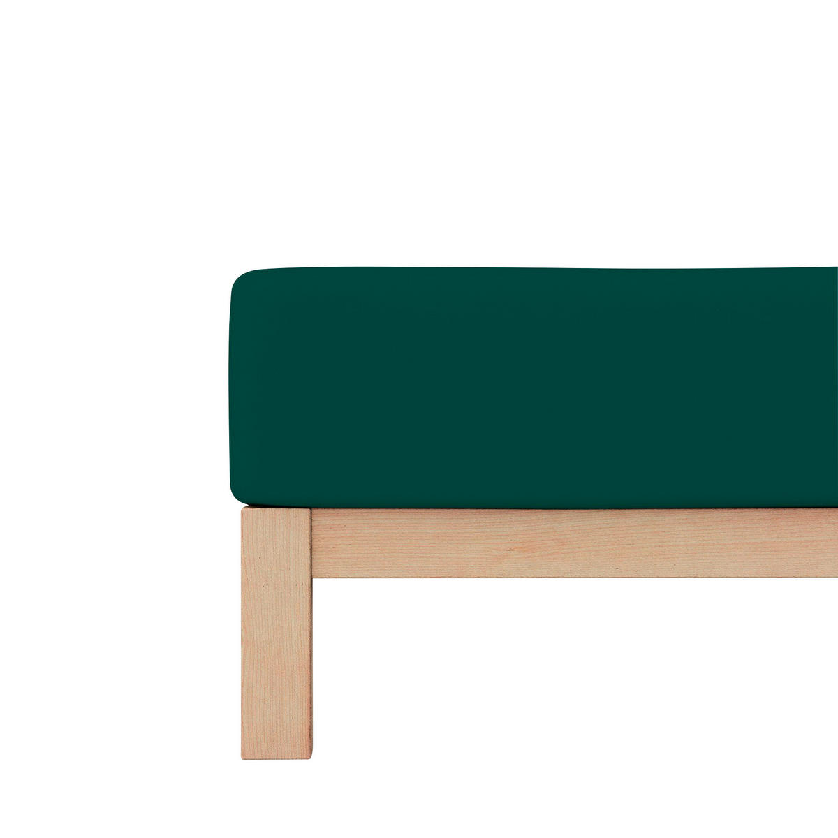 Эта простыня на резинке SCHLAFGUT (Ш x Д: прибл. 160 x 220 см) втемно-зеленомцвете кардинально определяет сияние вашего оазиса покоя в спальне. Цвет идеально подчеркивает ваше постельное белье - темно-зеленый вариант шикарно дополняет ваш индивидуальный стиль жизни. С уверенной интенсивностью эта цветовая вариация подчеркивает атмосферную концепцию проживания. Благодаря высоте планок около 25 см простыня надежно охватывает множество различных матрасов.