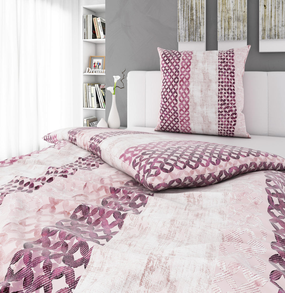 Линейный декорпленяет своей декоративной привлекательностью и приглашает вас отправиться в путешествие по стране снов. Комплект из 2 предметов, состоящий из наволочки и пододеяльника, несомненно, имеет гармоничный вид.
