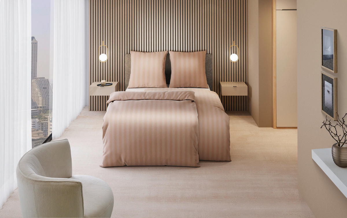Чехлы застегиваются на молнию, предотвращая соскальзывание. Стирать простыню легко и удобно в стиральной машине при температуре до 60°C. Простыню также можно сушить в стиральной машине. Для безмятежных ночей доверьтесь этому бежевому атласному белью DIETER KNOLL (примерно 155 x 220 см)!