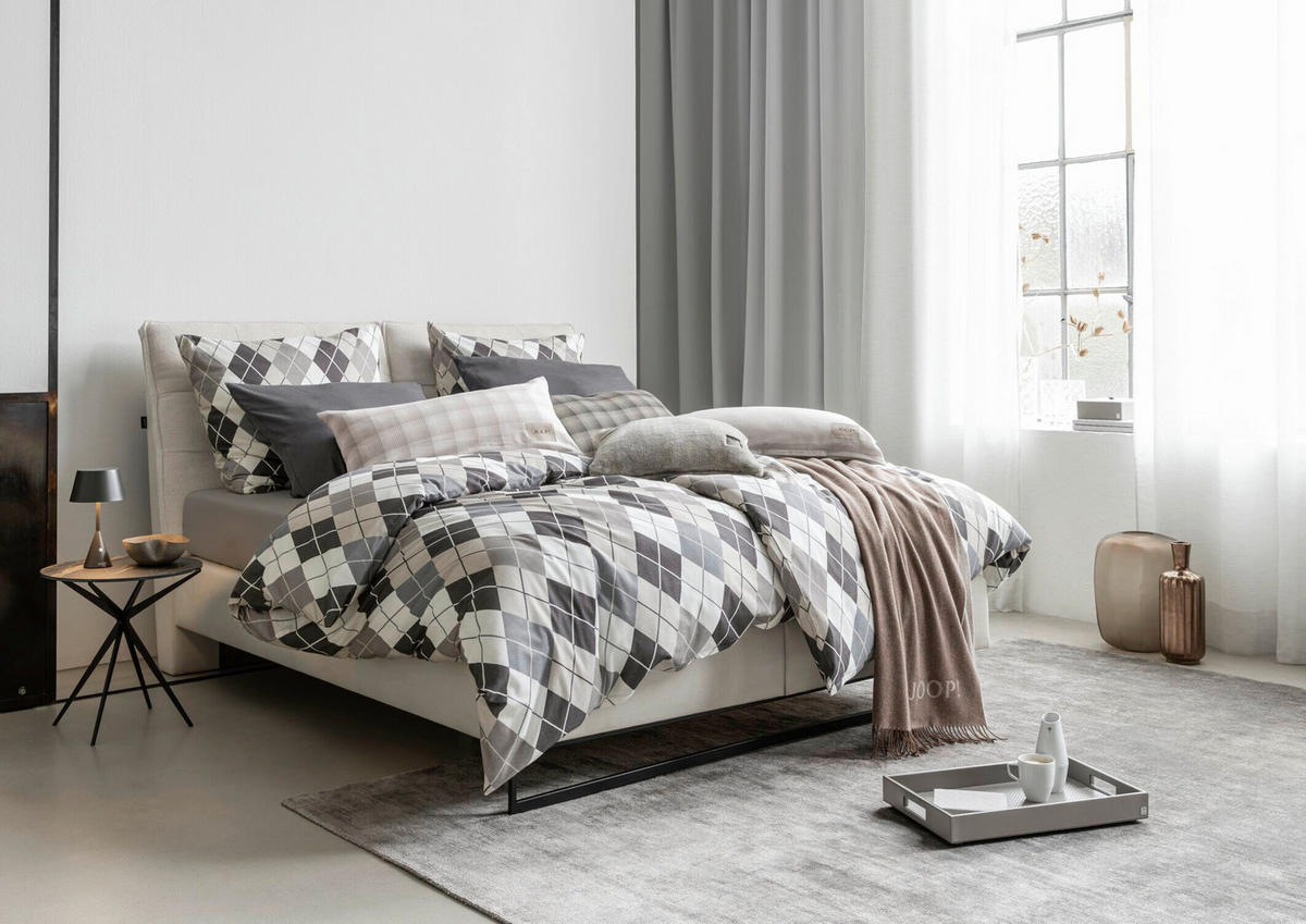 Ваша кровать превратится в уютный фон для комфортного отдыха благодаря фланелевому белью JOOP! (прибл. 200 x 200 см) темно-серого цвета. Бренд JOOP!, ориентированный на роскошь, отличается гармоничным и элегантным дизайном, впечатляющим эксклюзивным внешним видом и высоким качеством. Этот темно-серый комплект создаст уютную атмосферу в зоне отдыха вашего дома благодаря стильной цветовой гамме. Он станет прекрасным дополнением к вашему любимому стилю: графический дизайн создаст неповторимую атмосферу в общей концепции интерьера спальни. Для создания совершенно стильного образа вашей спальни этот комплект из 3 предметов включает пододеяльник и две подходящие наволочки.