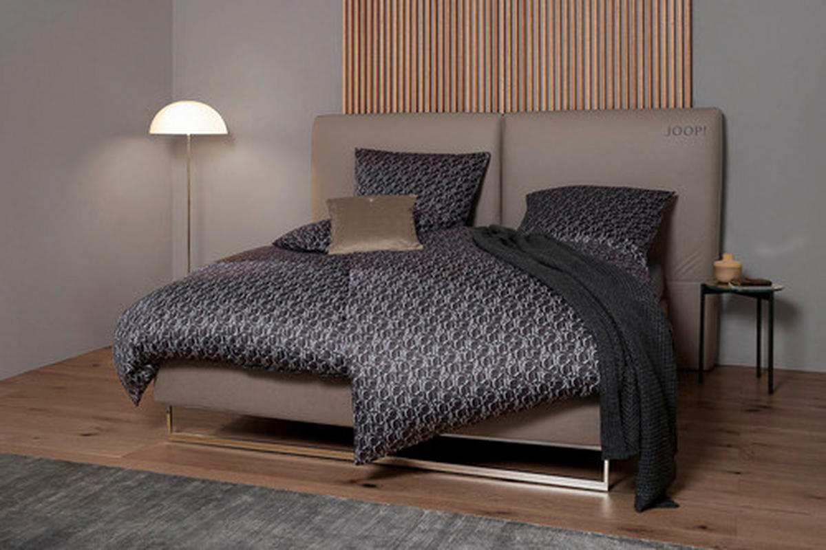 КомпанияJOOP!, предлагающая стильный дизайн, сочетает в себе роскошный дизайн и абсолютный комфорт с этим постельным бельем Ornament (Ш x Д: прибл. 135 x 200 см) цветаантрацит. Наволочки украшены логотипом бренда, буквы которого расположены в необычном порядке и частично перекрывают друг друга. Это создает креативный образ, позволяющий вам выразить свою любовь к бренду.