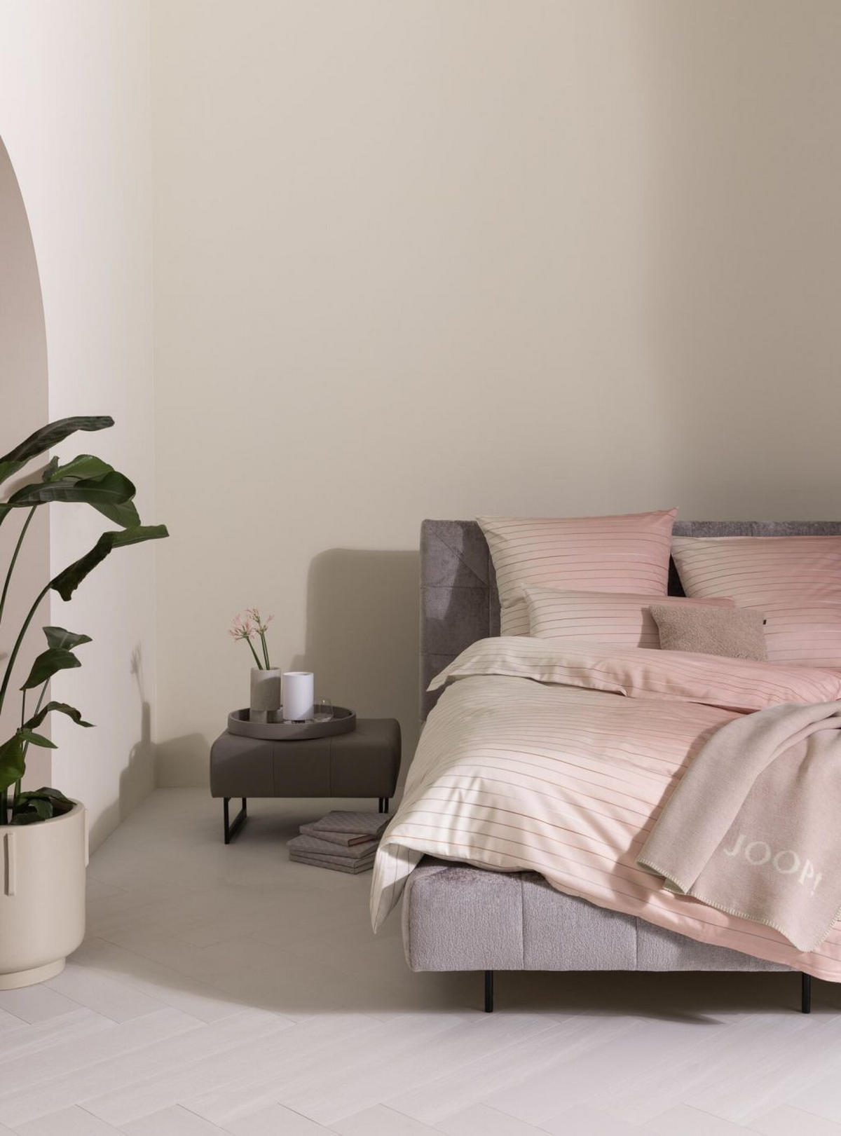 Прочная конструкция из натурального волокна обеспечивает замечательные качества: регулирующий влагу и дышащий, чистый хлопок дает веские основания использовать этот материал. Плотная, очень гладкая ткань из сатина Мако поддерживает баланс температуры, благоприятный для кожи, круглый год.