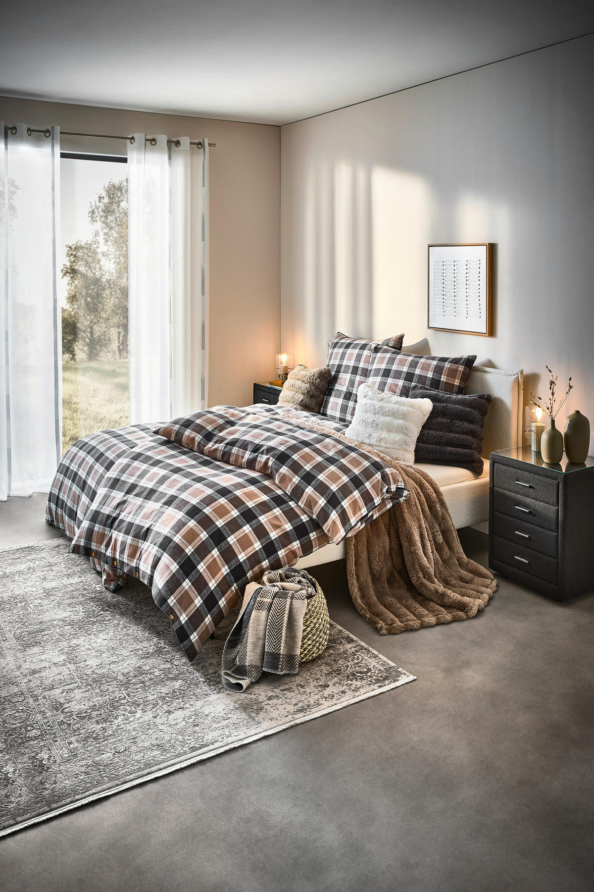 Уютное и элегантное фланелевое постельное белье DIETER KNOLL (прибл. 135 x 200 см) антрацитового цвета обеспечит вам спокойный сон. Эксклюзивный бренд DIETER KNOLL делает ставку на изысканный шик, вневременную элегантность и безупречное качество. Комплект привлекает своей привлекательной цветовой гаммой, которая подчеркивает уютную атмосферу в спальне. Геометрический рисунок в клетку идеально дополнит любой интерьер, добавив завершающий штрих вашему постельному белью. Комплект из 2 предметов состоит из пододеяльника и наволочки для создания единого образа в вашем уютном раю.