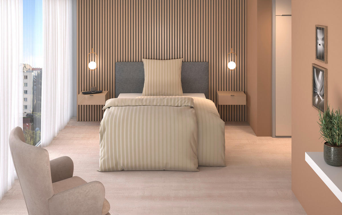 Ваше новое сатиновое постельное белье DIETER KNOLL (прибл. 155 x 220 см) бежевого цвета добавит уюта и индивидуальности вашей спальне. С высококачественной продукцией DIETER KNOLL вы будете наслаждаться роскошным комфортом высочайшего уровня. Комплект соблазняет своим красивым дизайном, который подчеркивает домашнюю атмосферу в вашей спальне. Классический узор, который никогда не перестает радовать, выберите полосатый дизайн. Этот гармоничный комплект включает в себя всего два предмета: Помимо пододеяльника, в комплект входит подходящая наволочка для гармоничного общего вида.