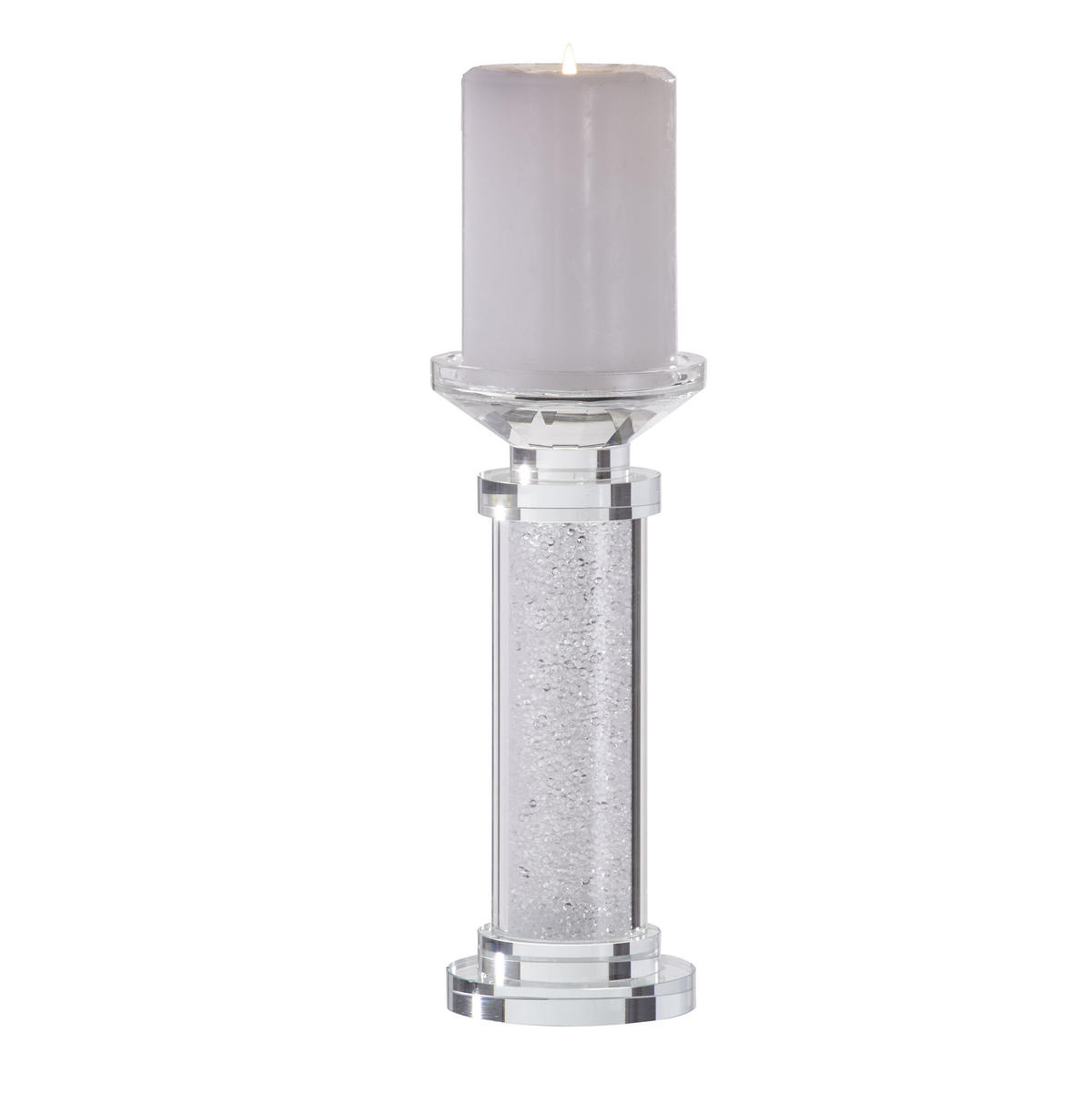 Будь то романтический вечер на двоих или украшенный праздничный стол, одно обязательно: свечи. Этот подсвечник - идеальный выбор для создания идеальной атмосферы. Эта элегантная модель изготовлена из закаленного хрустального стекла и подходит для столбчатой свечи. Множество мелких кристаллов внутри этого аксессуара в форме колонны высотой около 21 см создают очаровательное мерцание. Выбирая подходящую свечу, отразите лаконичный стиль подсвечника или намеренно добавьте яркий акцент. Нет предела вашей креативности. Создайте уютную атмосферу с этим подсвечником отAMBIA HOMEи его теплым сиянием!