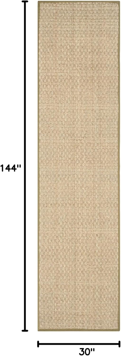 Ковер-дорожка SAFAVIEH, 77 x 366 см, Natural Fiber Collection - Natural & Olive Green, сизаль, узор "корзинное плетение" с каймой (NF114G)