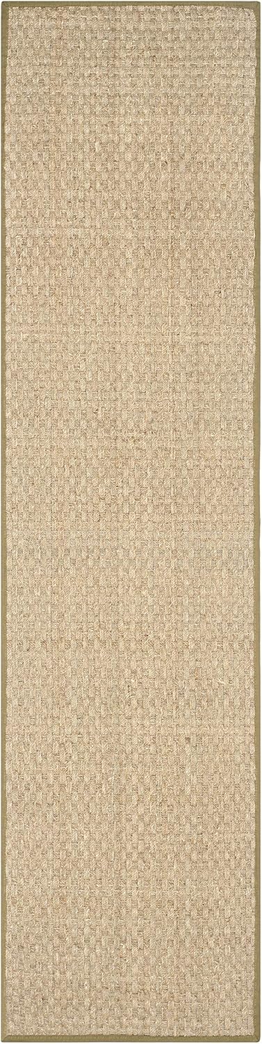 Ковер-дорожка SAFAVIEH, 77 x 366 см, Natural Fiber Collection - Natural & Olive Green, сизаль, узор "корзинное плетение" с каймой (NF114G) 19 005₽