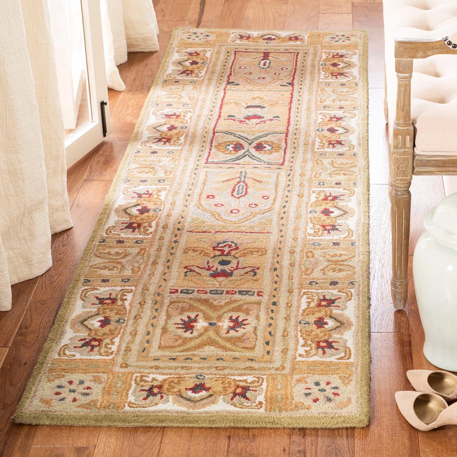 Ковер-дорожка SAFAVIEH, 69 x 610 см, Classic Collection Sage / Multi CL305A ручной работы традиционный восточный премиальный шерстяной