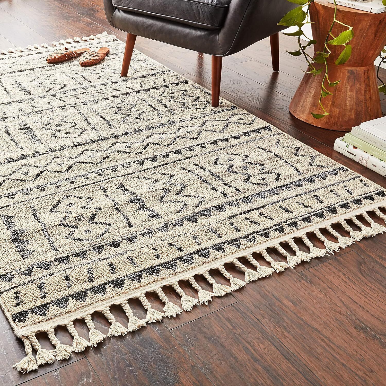 Ковер nuLOOM, 122 x 183 см, Akua Ethnic Bands Tassel, Ivory