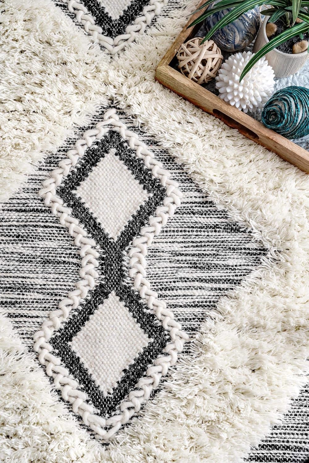 Натуральная изоляция: шерсть обладает естественными теплоизоляционными свойствами, что способствует регулированию температуры в доме. Она согреет ваши ноги в холодные месяцы и обеспечит прохладу в теплое время года, что делает этот ковёр идеальным для любого помещения.