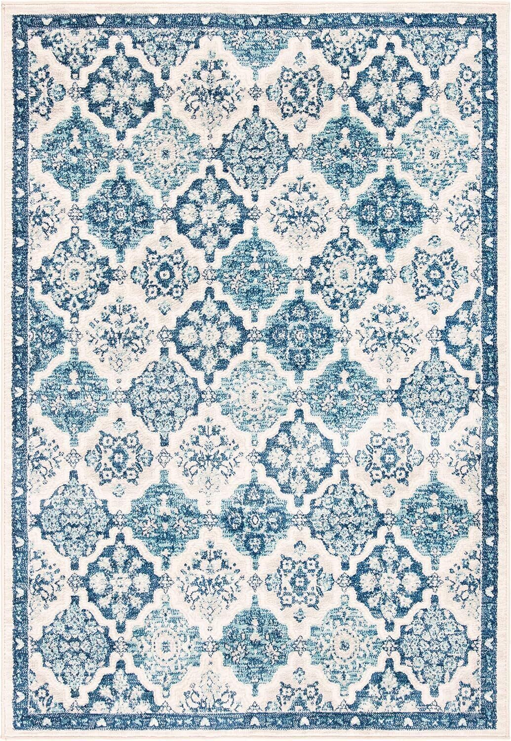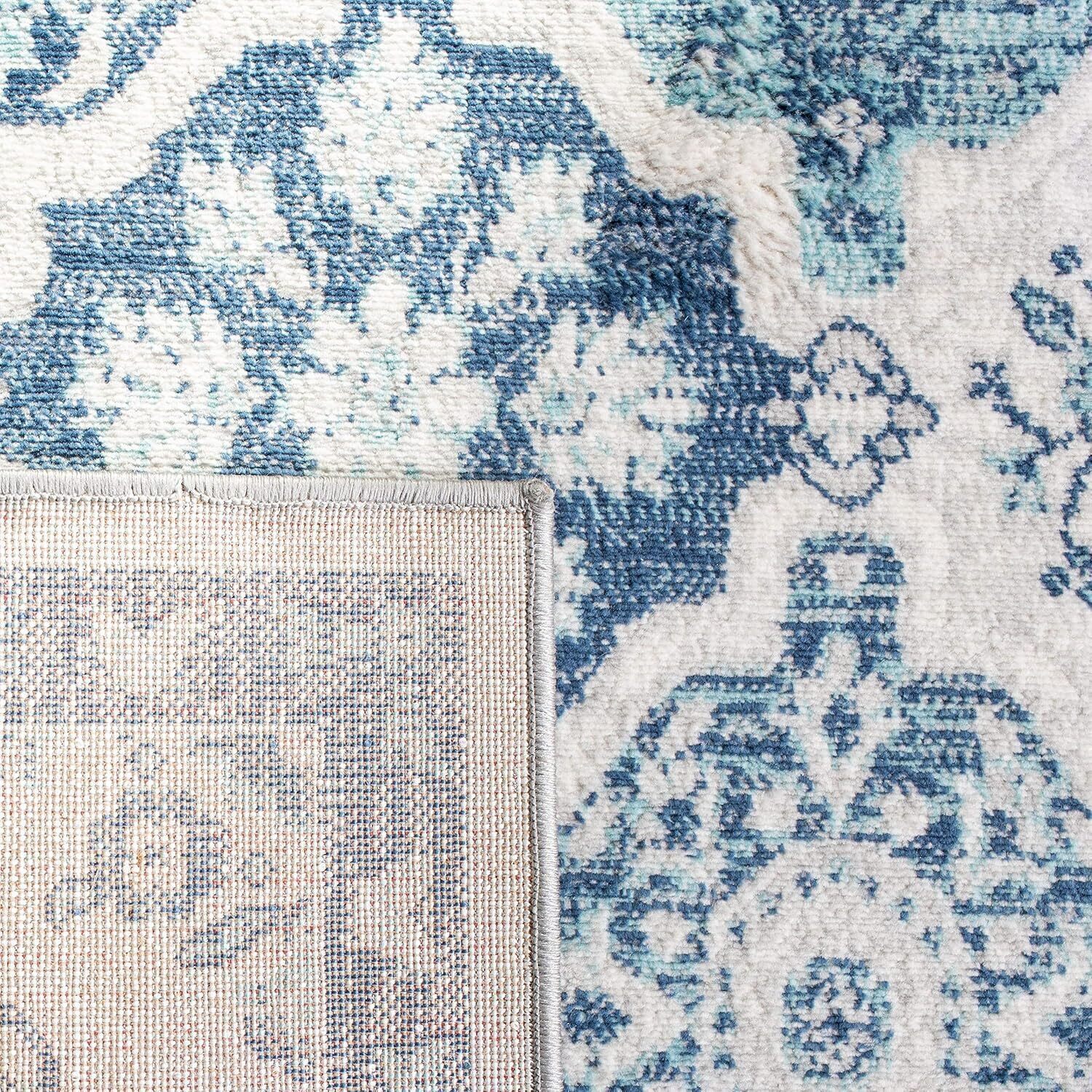 Ковер для гостиной и спальни SAFAVIEH, 61 x 122 см, Brentwood Collection Navy / Grey BNT815M с цветочным принтом, потертый, без ворса