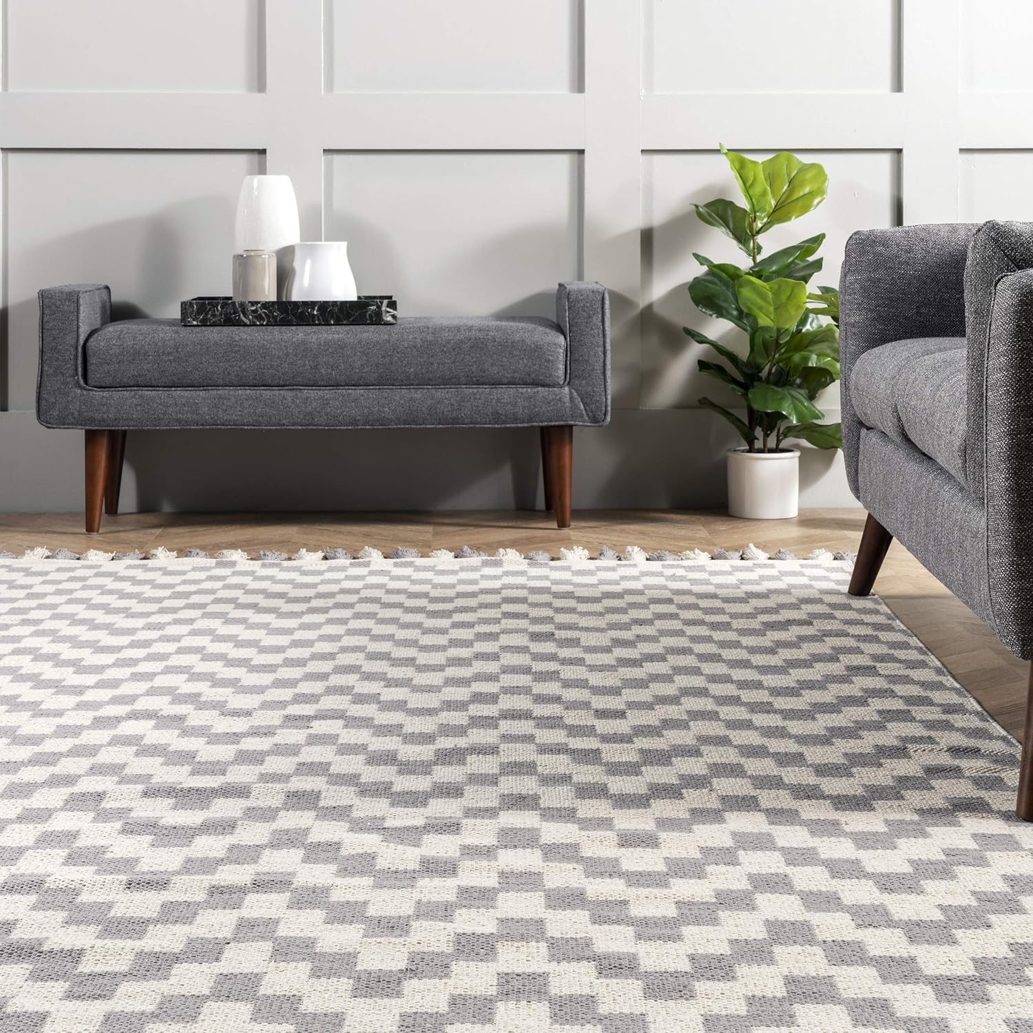 Ковер nuLOOM, 153 x 244 см, Priya Chevron Cotton Tassel, Grey
