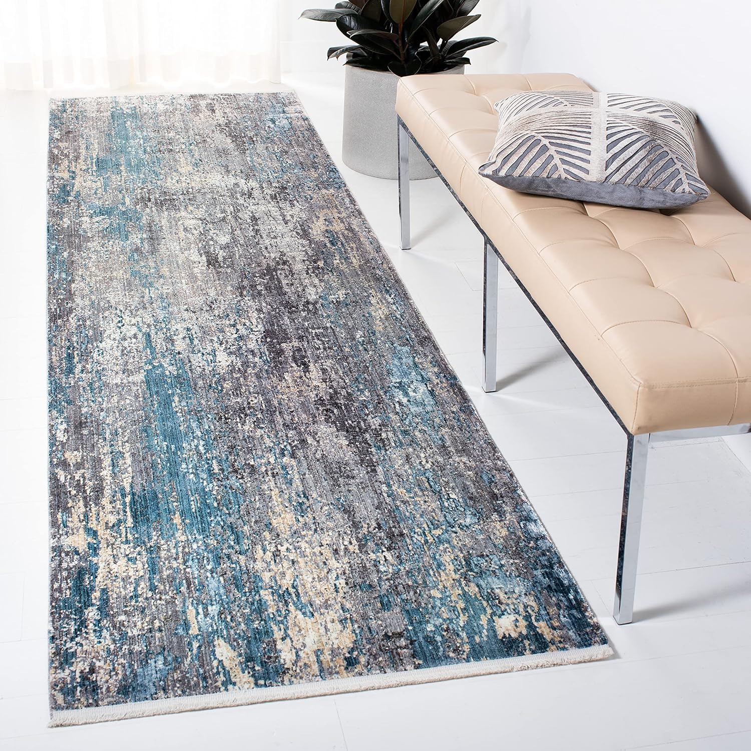 Ковер-дорожка SAFAVIEH, 92 x 305 см, Eclipse Collection Grey/Blue ECL128G Modern Abstract Viscose