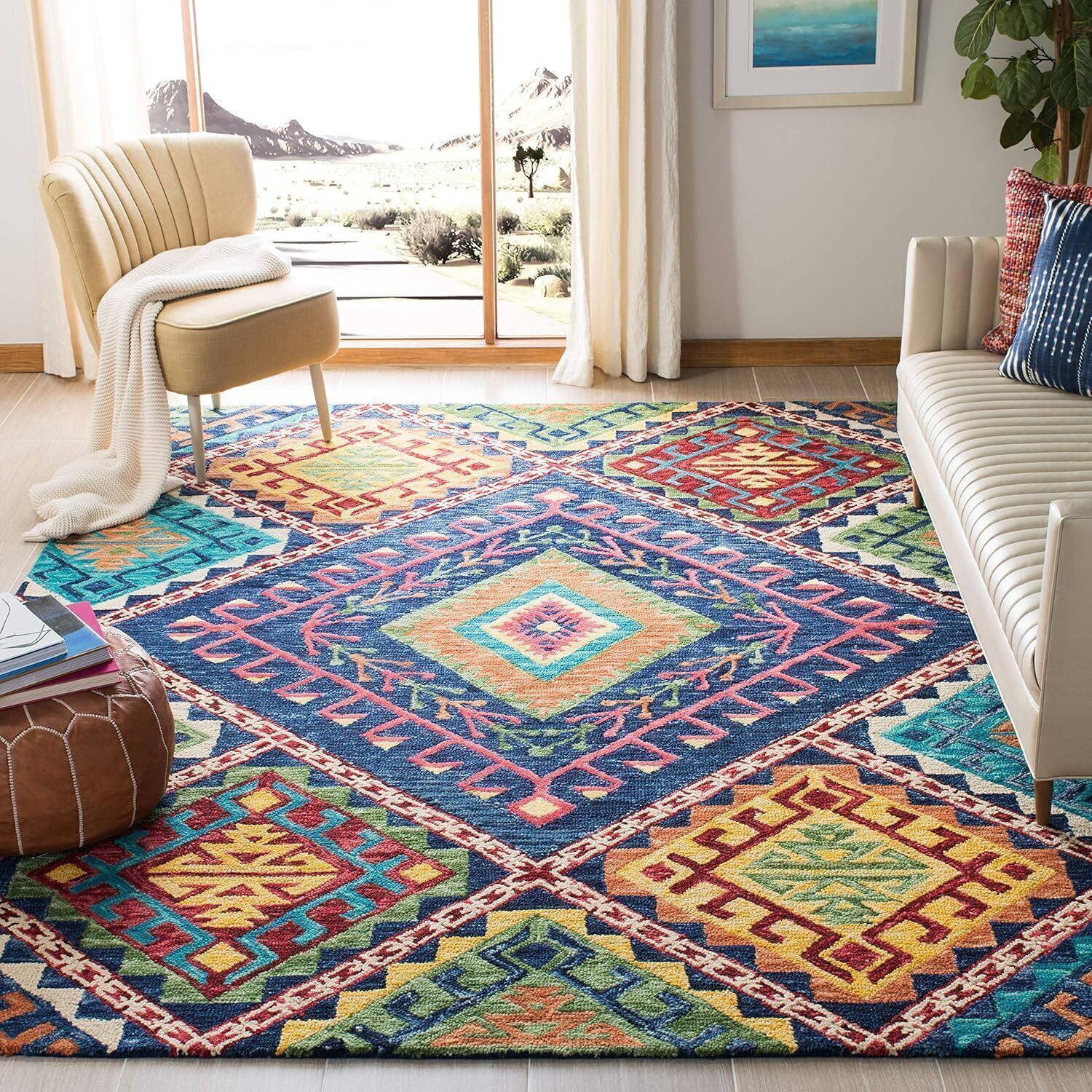 Ковер SAFAVIEH, 336 x 458 см, Aspen Collection, Blue & Multi, ручной работы, богемный, алмазный узор, шерсть, идеально для помещений с высокой проходимостью: гостиная, спальня (APN516M) 167 821₽
