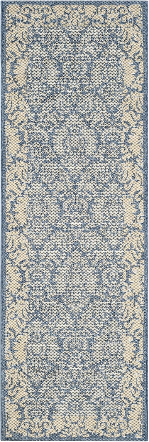 Ковер SAFAVIEH, 69 x 366 см, Washable Rug Outdoor Courtyard Collection - ковер-дорожка, Blue & Natural, без линьки и легкая чистка, идеально для патио, прихожей, гардеробной, коридора, кухни (CY2727-3103)