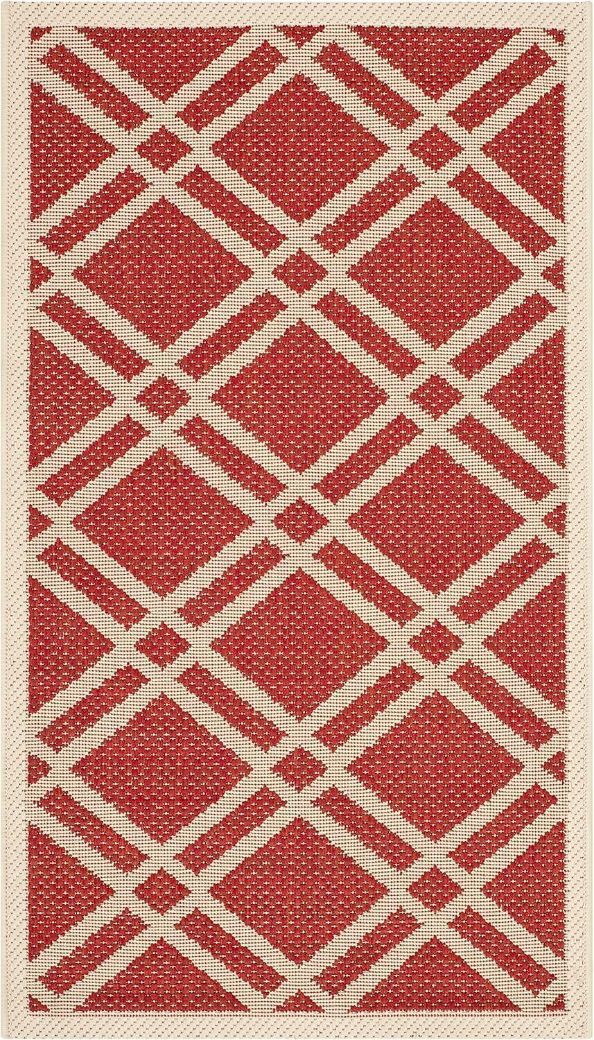 Ковер SAFAVIEH, 61 x 110 см, Washable Outdoor Courtyard Collection - , Red & Bone, без линьки и простой в уходе, идеально для патио, входной двери, прихожей, придверный ковер (CY6923-248)