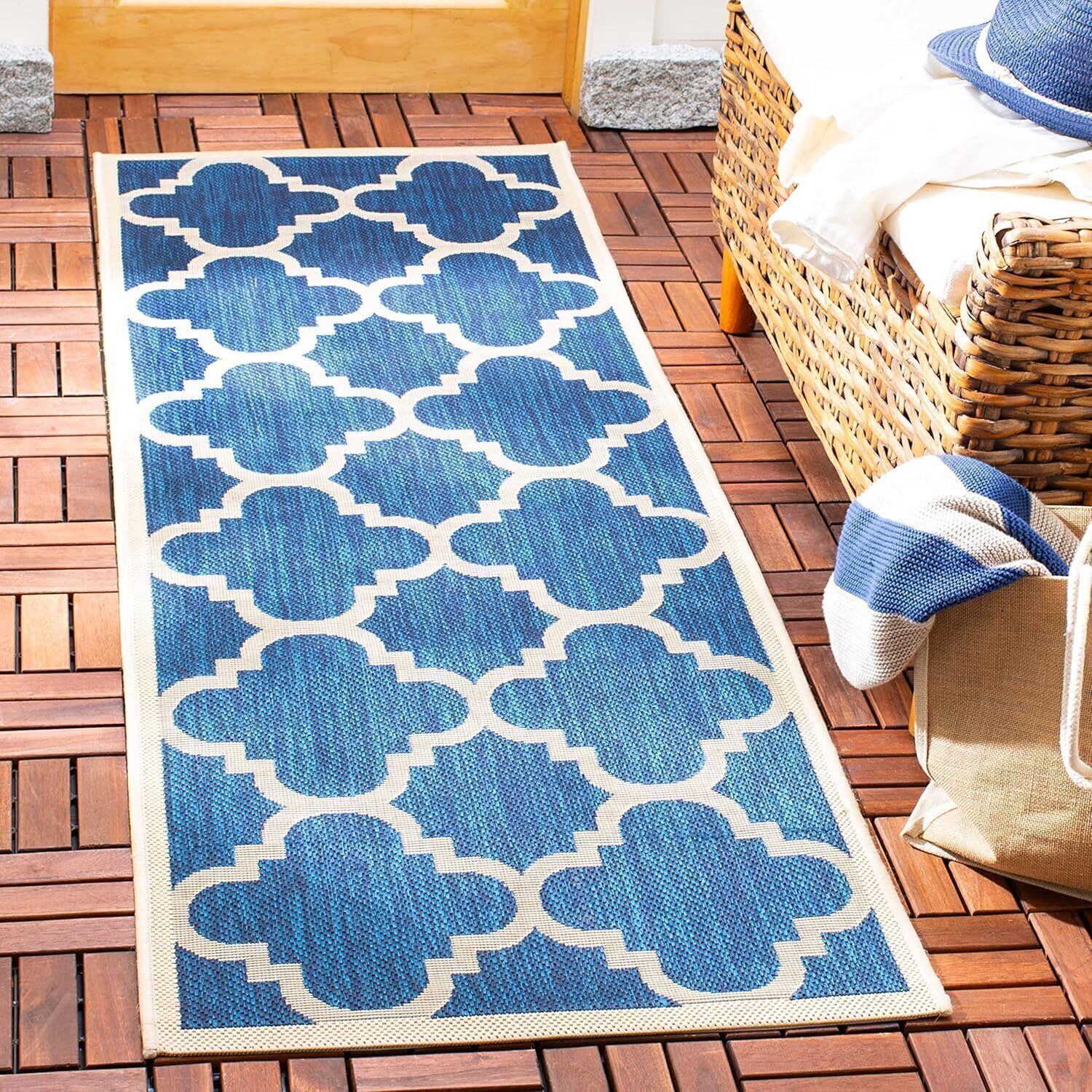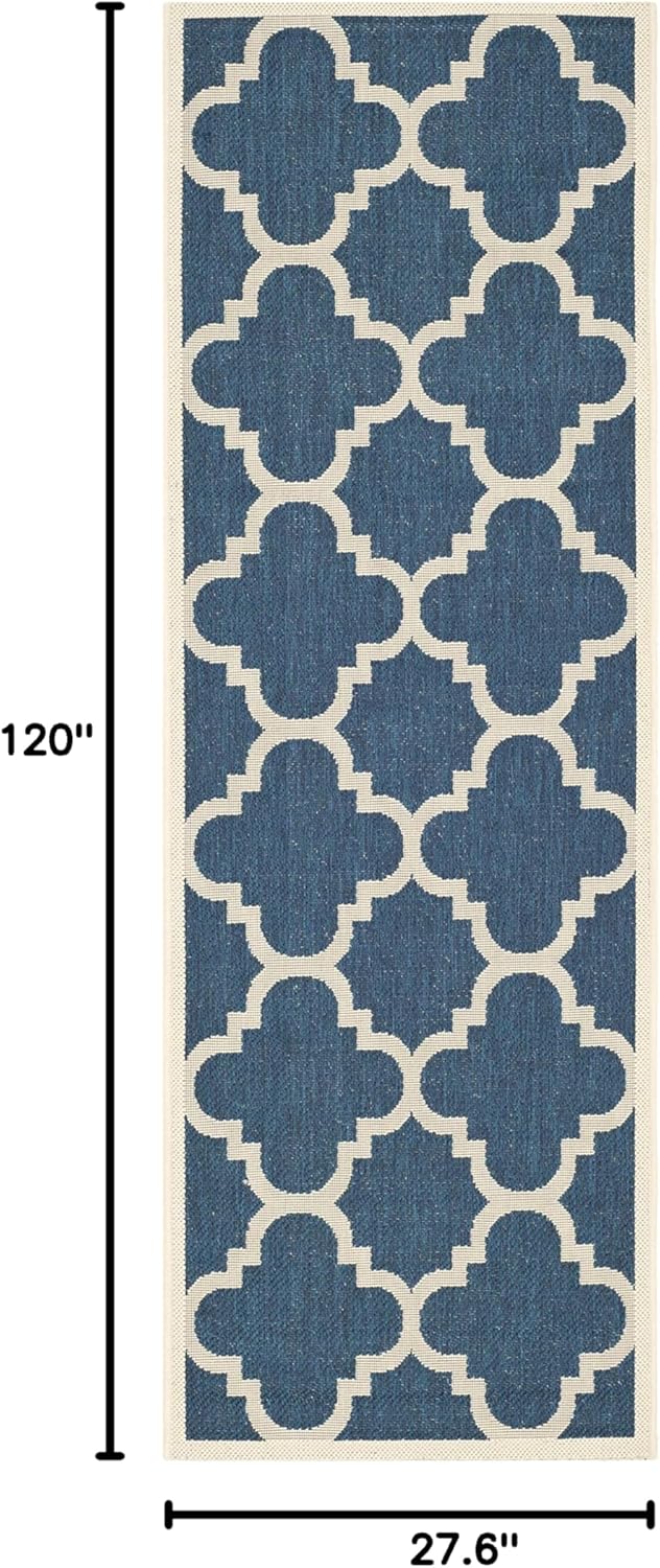 Ковер SAFAVIEH, 69 x 305 см, для улицы из коллекции Courtyard — ковер-дорожка, Navy & Beige, без ворса и легкий в уходе, идеально для патио, прихожей, гардеробной, коридора, кухни (CY6243-268)