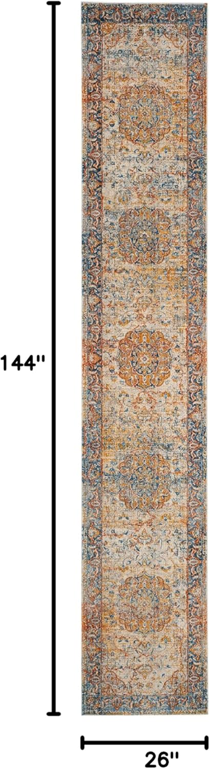 Ковер-дорожка SAFAVIEH, 67 x 366 см, Persian Collection, Blue & Multi, дизайн в стиле Oriental Distressed, не линяет и прост в уходе, идеален для помещений с высокой проходимостью в гостиной, спальне (VTP435B) 19 436₽