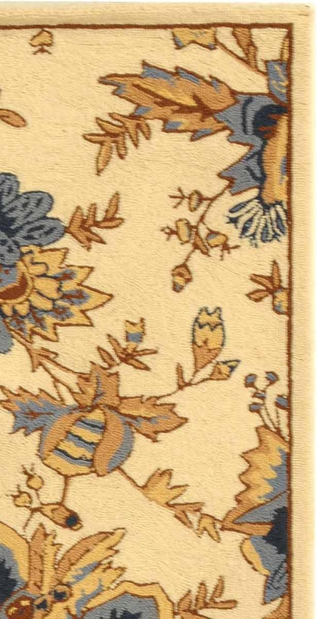 Этот ковер имеет фон цвета слоновой кости и потрясающий цветочный узор в оттенках синего, бежевого и кремового.