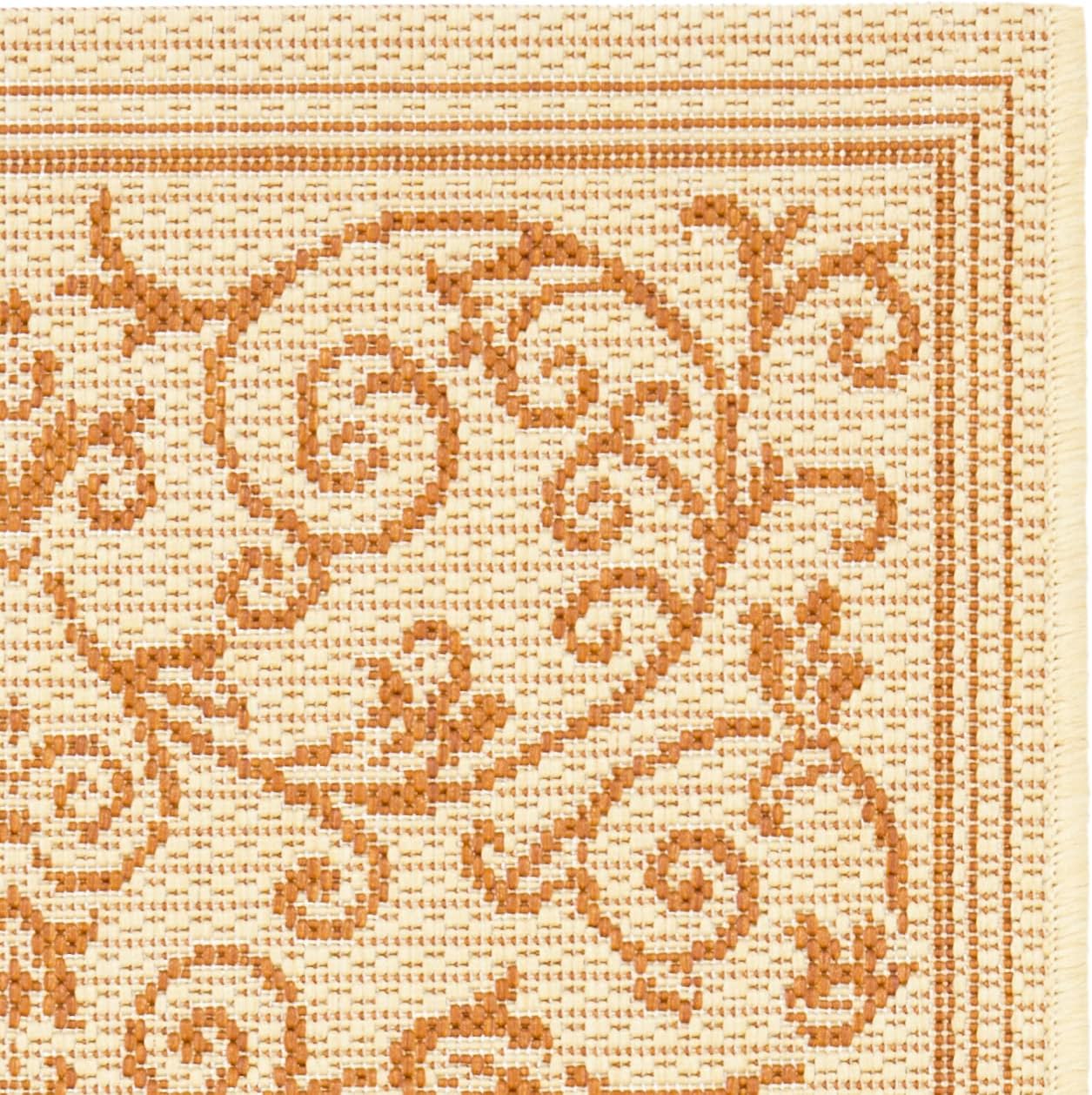 Ковер SAFAVIEH, 61 x 110 см, Washable Rug Outdoor Courtyard Collection - Natural & Terracotta, не линяет и легко чистится, идеально для патио, входной двери, прихожей, придверный ковер (CY2098-3201)