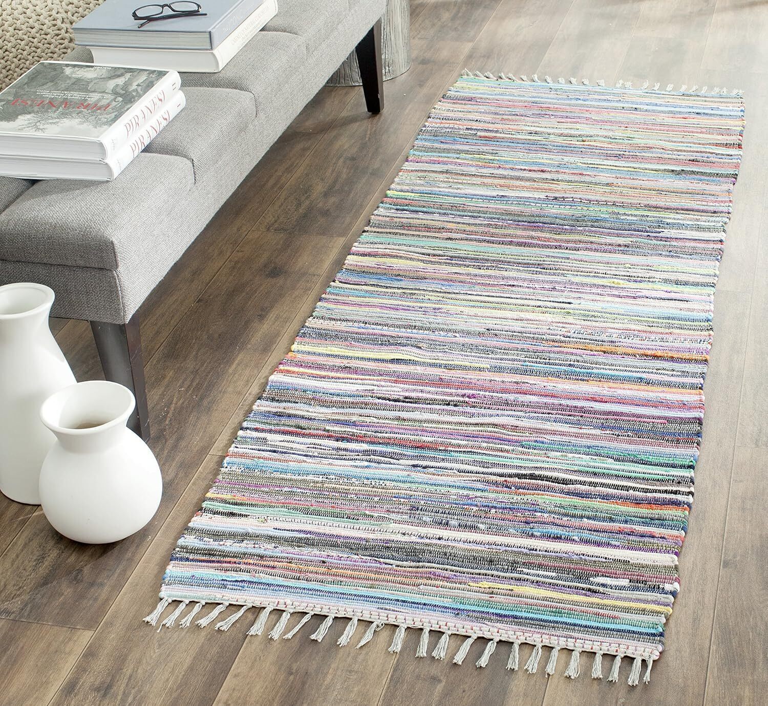 SAFAVIEH, 69 x 336 см, Ковер-дорожка Rag Rug Collection, Grey & Multi, ручной работы, богемная полоска, хлопок, идеально для помещений с высокой проходимостью в гостиной, спальне (RAR121M)