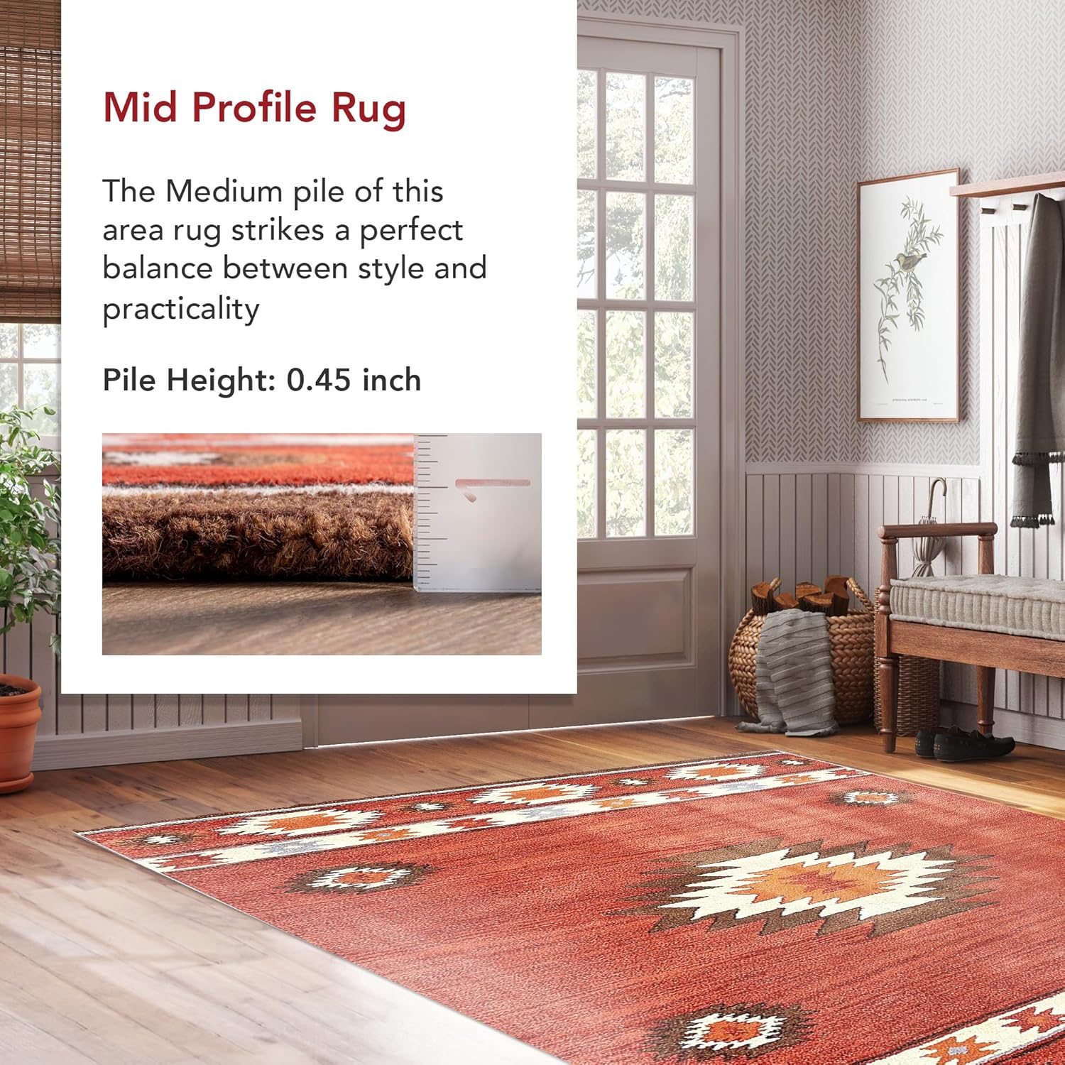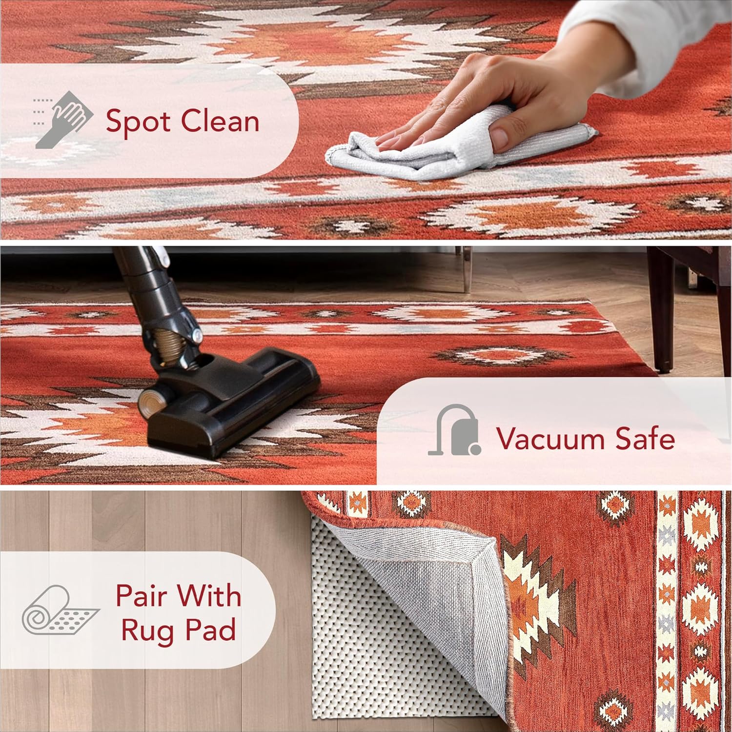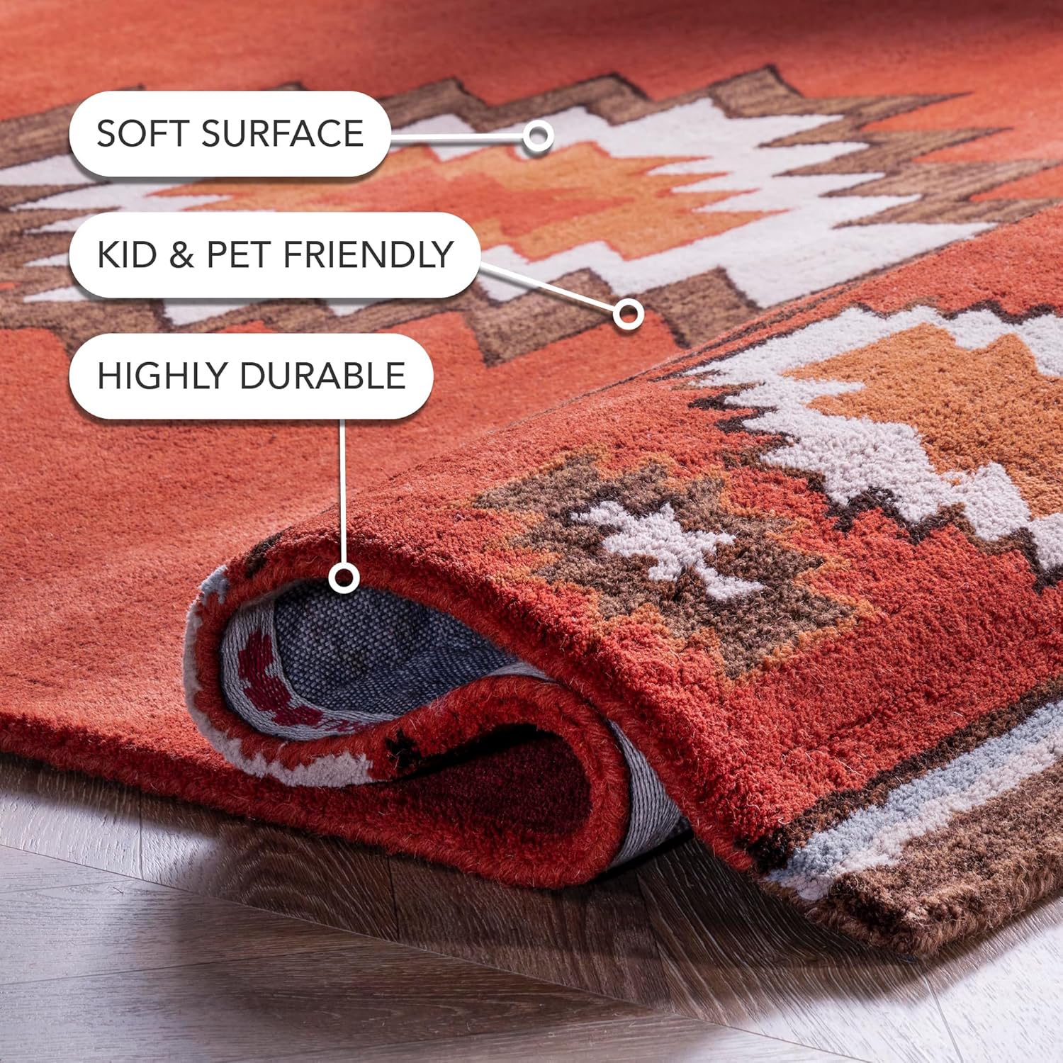 Стиль: Geometric Расцветка: Southwestern Способ изготовления: Tufted Состав ворса: Wool Состав основы: 100% Recycled Cotton Уличный/для помещений: Indoor Тип помещения: Bedroom, Dining Room, Hallway, Kitchen, Living Room Форма: Rectangular Высота: Medium Pile Толщина: 0.45 Inches Количество штук: 1 Рекомендации по уходу: Hand Wash Only Устойчивый к пятнам: No Особенности: Non Slip Уровень водонепроницаемости: Water Resistant