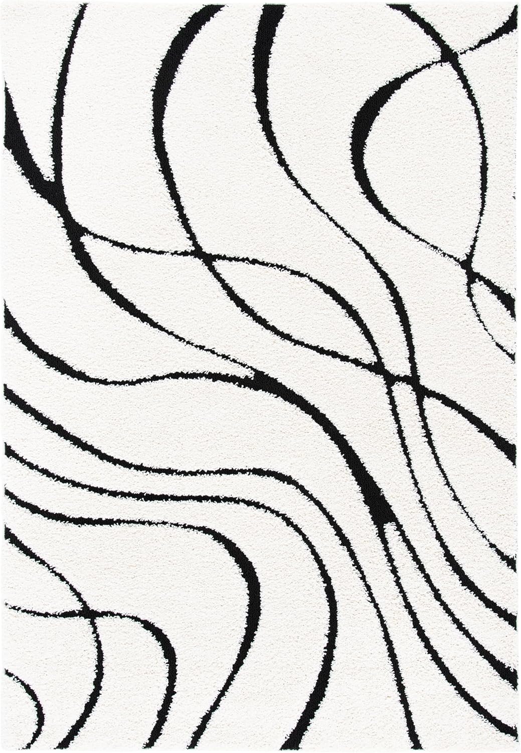 Ковер SAFAVIEH, 161 x 229 см, Florida Shag Collection - Ivory & Black, без линьки и простой в уходе, идеален для помещений с высокой проходимостью в гостиной, спальне (SG471-1290)