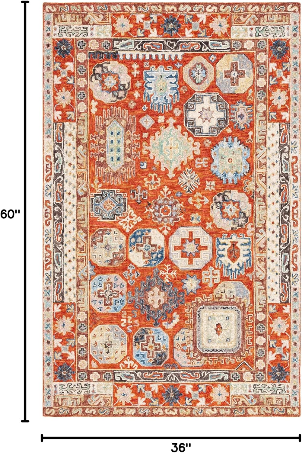 Ковер SAFAVIEH, 92 x 153 см, Aspen Collection, Rust & Ivory, ручной работы из шерсти, богемный этнический дизайн, идеален для помещений с высокой проходимостью в гостиной, спальне, столовой (APN305P-3)