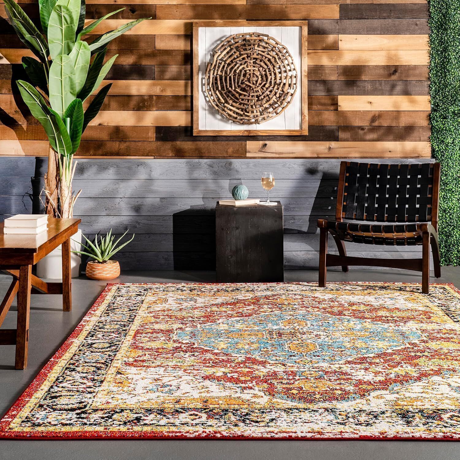Универсальный и функциональный: этот ковер для использования в помещении и на улице имеет площадь 6 квадратных футов, что делает его идеальным выбором для комнат разных размеров. Он станет идеальным центральным элементом гостиной, патио, террасы или любой комнаты, которую можно поднять на возвышение.