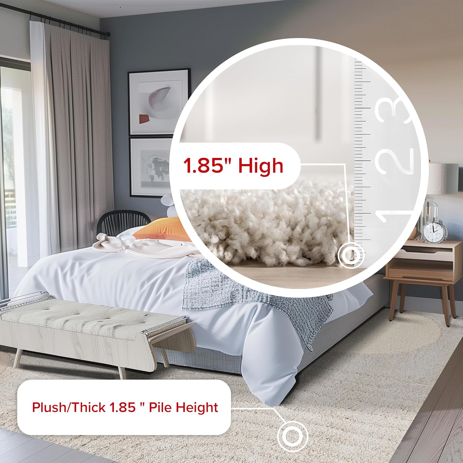 Ультрамягкий плюшевый ворс: высокий ворс этого ковра создаёт идеальный баланс между стилем и невероятным уютом под ногами. Наш ковёр невероятно мягкий на ощупь, при этом за ним легко ухаживать в гостиной или спальне.